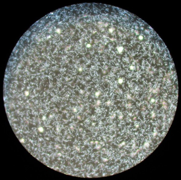 암시야 현미경으로 200배 확대된 ''렙토스피라''.