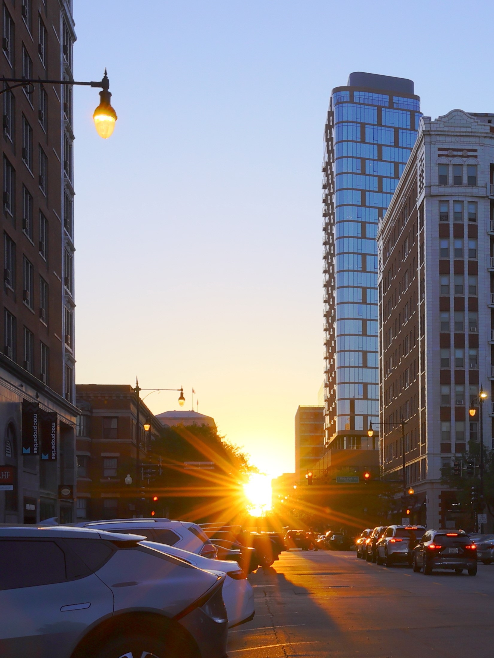 춘분점 근처 시카고에서는 일몰이 동서 방향의 거리 중간에서 발생하여 (시카고헨지라고 알려진 현상) 흥미로운 매직아워 사진 촬영 기회를 만들어 낸다. 도시 협곡에서 회절 스파이크가 나타나는 것과 같은 현상이 일어난다. 유사한 현상 (맨해튼헨지 등)은 일 년 중 다양한 시기에 세계 다른 지역에서도 발생한다.[3]