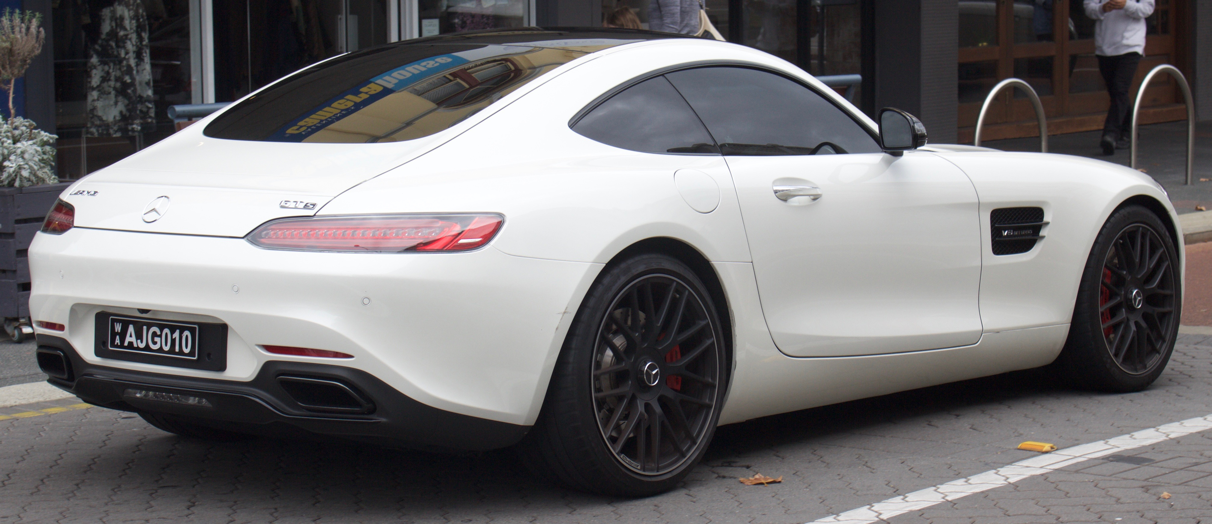 메르세데스-AMG GT의 1세대 모델은 쿠페(C190)와 로드스터(R190) 두 가지 형태로 출시되었다. 2014년 9월 9일에 처음 공개되었으며[65], 같은 해 10월 파리 모터쇼에서 대중에게 공식적으로 선보였다. 2013년 생산이 종료된 SLS AMG의 실질적인 후속 차종이지만, 세그먼트를 낮춰 포르쉐 911과 직접 경쟁하는 모델로 자리매김했다.[66] 이 모델부터 AMG는 메르세데스-벤츠의 하위 브랜드인 '메르세데스-AMG'로 독립했으며, 차량 후면의 'AMG' 엠블럼 위치가 오른쪽에서 왼쪽으로 변경되었다.