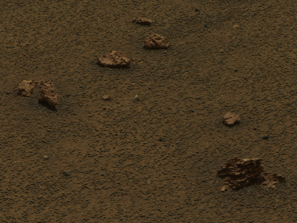 토양은 크게 두 가지 형태로 나타난다. 하나는 "매끄러운 시트"로, 매우 평평하며 퇴적암 노출이 거의 보이지 않는다. 다른 하나는 "평원 잔물결"로, 경사져 있으며 높이 10~40cm, 너비 1.5~5m 정도이며, 최상층 퇴적암 노출과 섞여 있는 경우가 많다.[7] 매끄러운 시트 위에는 1cm 높이의 "능선 잔물결"이 많이 있는데, 이들은 적철광 구형체가 부서진 1mm 미만의 조각들로 이루어져 있다.[32]