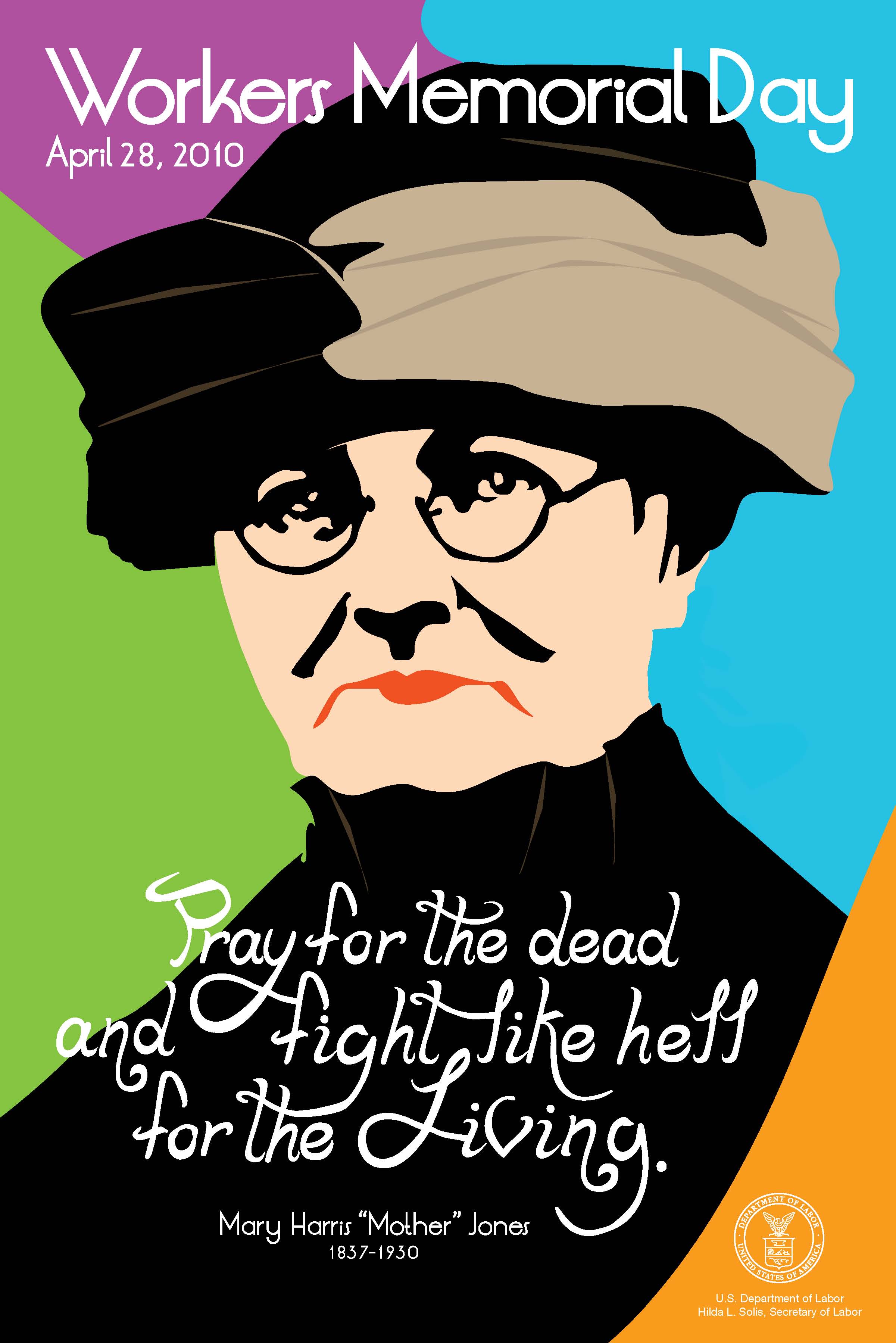 - 존스의 "죽은 자들을 위해 기도하고, 살아있는 자들을 위해 지옥처럼 싸워라."[37]라는 말은 1세기가 넘도록 노조 지지자들 사이에서 회자되고 있다. "모든 선동가들의 할머니"로 미국 상원(United States Senate)에서 규탄받았을 때, 이미 "광부들의 천사"로 알려져 있던 그녀는 "나는 모든 선동가들의 증조할머니가 될 만큼 오래 살기를 바랍니다."라고 대답했다.[38]