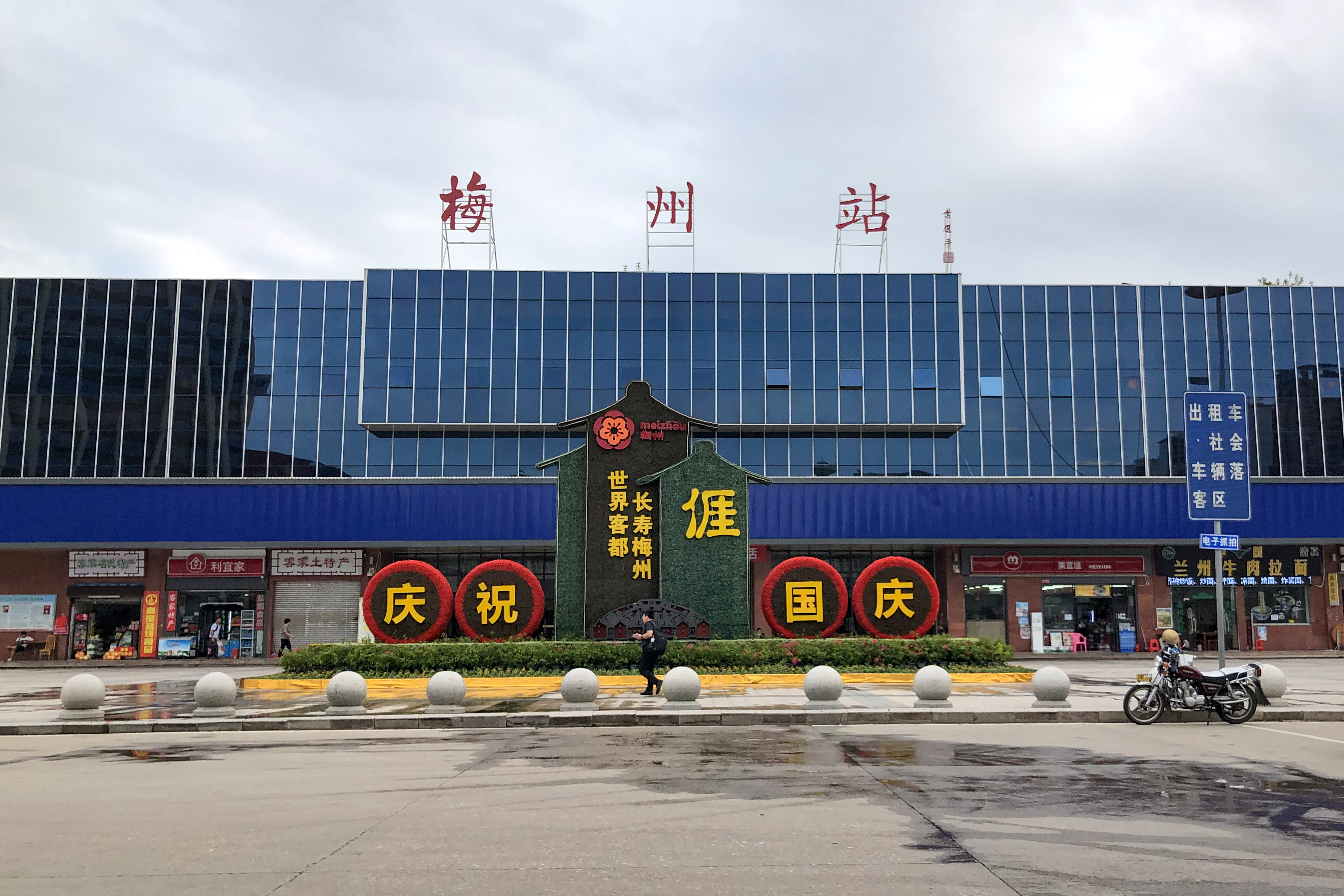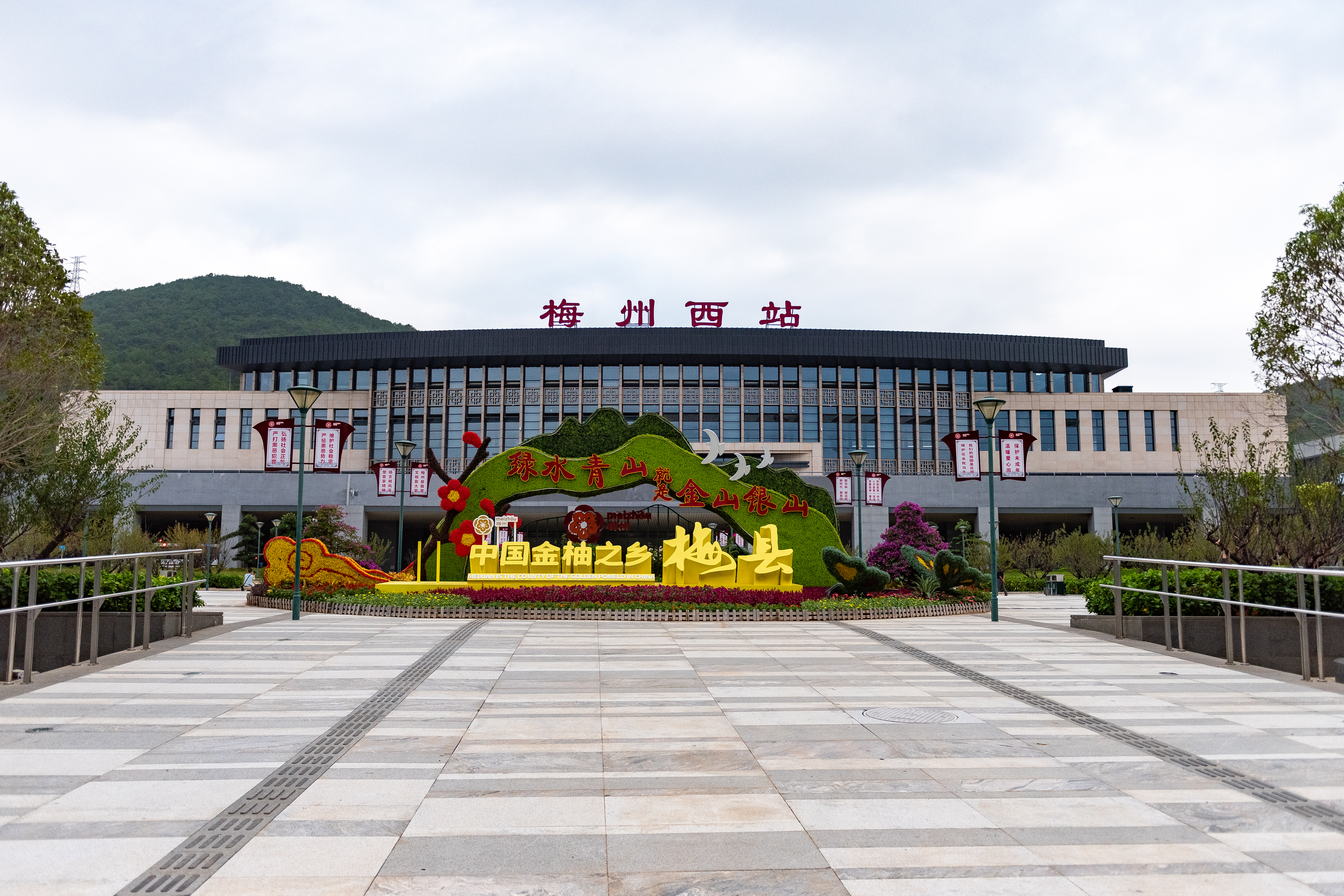 메이저우는 광둥성, 푸젠성, 장시성 세 성을 잇는 교통 중심지이자 해안 지역과 내륙 지역을 연결하는 다리 역할을 한다. 광저우-메이저우-산터우 철도와 메이저우-칸시 철도는 메이저우 시내의 메이저우 역을 이용하며, 광저우, 샤먼, 산터우, 선전, 다푸, 우창, 쿤밍과 정기적인 철도 연결을 제공한다.[12]2019년, 메이저우는 메이저우-차오산 고속철도의 종착역이 되었으며, 메이저우 서역에 새 역이 개통되어 광저우, 주하이, 선전, 산터우, 차오산, 이창, 샤먼과의 고속철도 연결이 가능해졌다.[11]
