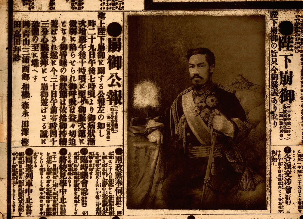 아버지를 잃은 무쓰히토 친왕은 깊은 슬픔에 잠겼다. 12월 29일 천황의 붕어가 공식 발표되었고, 대상이 선포되었다. 30일, 천황의 유해가 내장(內槨)으로 옮겨질 때, 무쓰히토 친왕은 마지막 작별 인사를 올렸다.