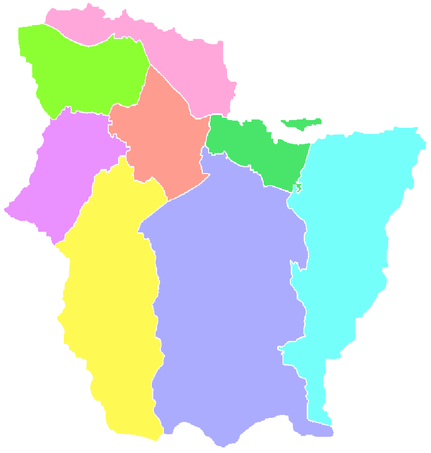- 진(鎭): 횡거진(横渠鎮), 괴아진(槐芽鎮), 탕욕진(湯峪鎮), 상흥진(常興鎮), 금거진(金渠鎮), 영두진(営頭鎮), 제진(斉鎮)