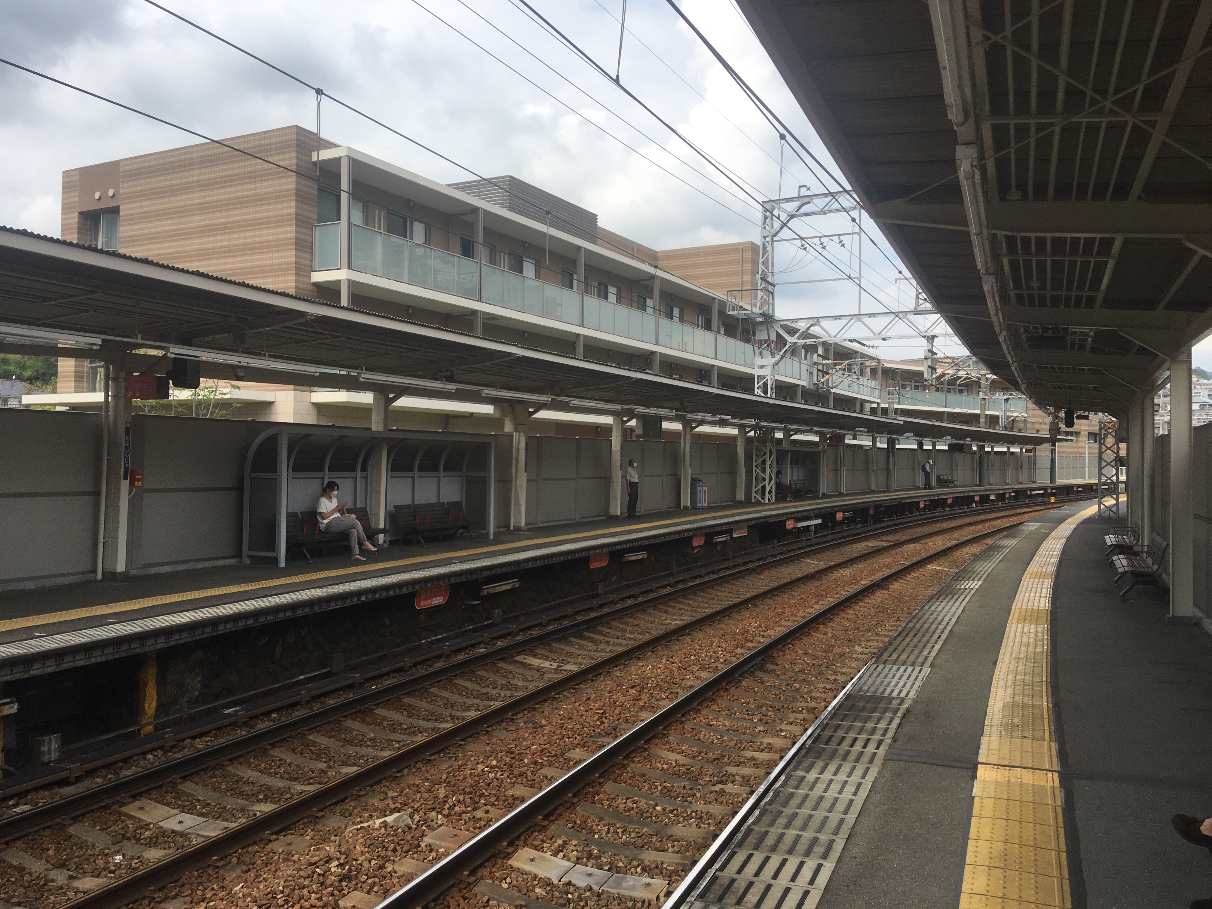 과거에는 우메다 방면 승강장에는 개찰구가 없고 구내 건널목을 통해 이동했으며, 다카라즈카 방면 승강장에만 개찰구가 있었다. 현재 역 건물(개찰구)은 상하행 승강장 모두 다카라즈카 방면에 위치한다.