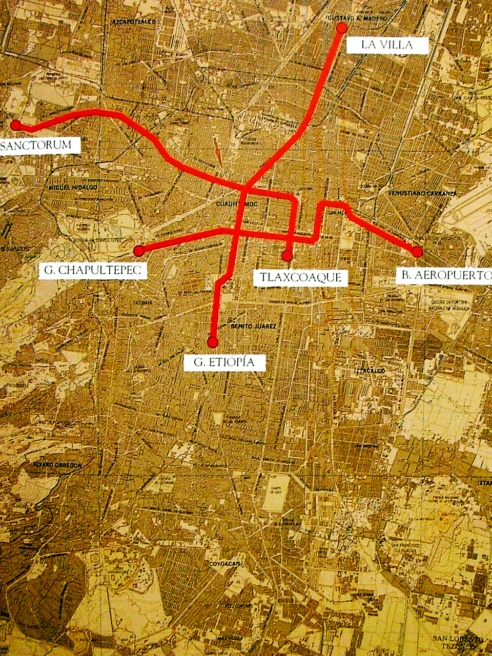 멕시코시티 지하철은 1960년대 말 멕시코시티의 심각한 교통 문제를 해결하기 위해 건설되기 시작했다. 엔지니어 베르나르도 킨타나가 주도하여 1967년 4월 29일 ''Sistema de Transporte Colectivo''라는 공공 조직이 창설되었고, 이 조직이 지하철 건설 및 운영을 담당하게 되었다.[10]