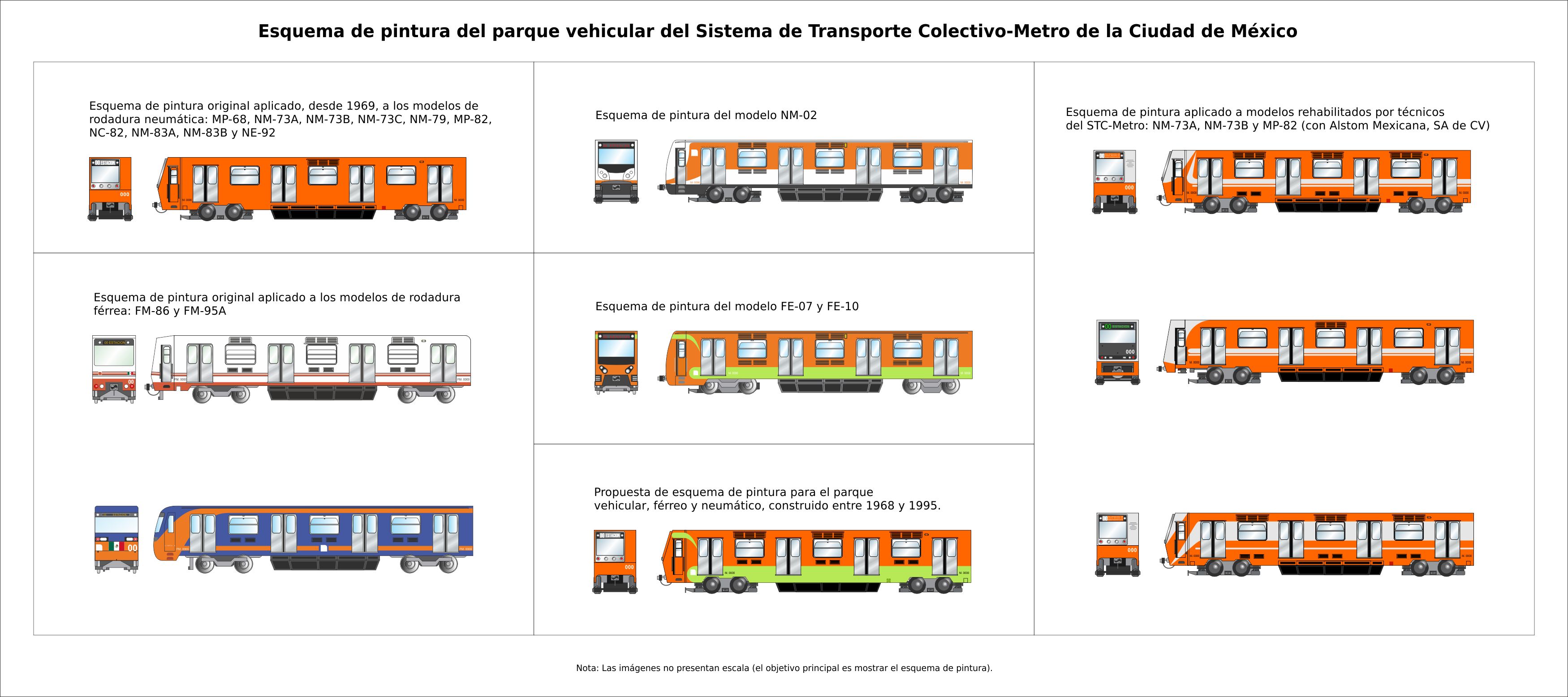 최대 설계 속도 제한은 고무차륜 차량의 경우 80km/h(평균 속도 35.5km/h), 강철 차륜 차량의 경우 100km/h(평균 속도 42.5km/h)이다. 강제 통풍이 사용되며 창문의 상단 부분을 열 수 있어 이 두 가지 유형의 환기를 통해 승객의 편안함을 향상시킨다. 파리 메트로 및 몬트리올 지하철에서 사용되는 차량과 마찬가지로, 멕시코시티 지하철 차량의 번호는 (최초 사용 연도가 아닌) 설계 연도에 따라 지정된다.