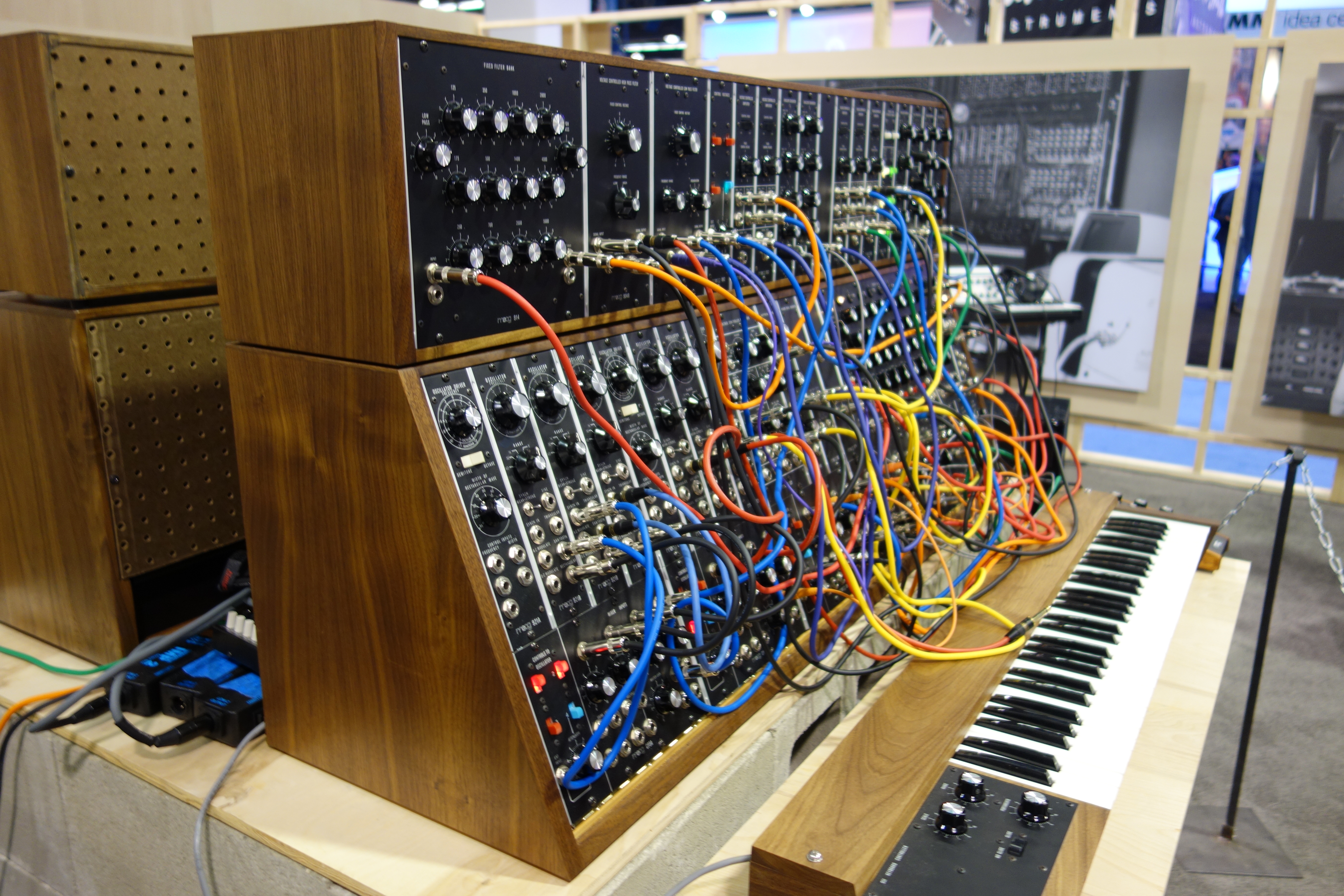 신시사이저에서 건반의 역할에 대한 논쟁이 있었다. 블라디미르 우샤체브스키와 무그의 경쟁자 돈 부클라와 같이 일부는 건반이 제한적이라고 생각했다. 그러나 무그는 대부분의 고객이 건반을 원한다는 것을 알고 건반이 악기를 더 접근하기 쉽게 만들었다는 것을 알았다. 사진에 건반을 포함시킨 것은 사용자가 합성기가 음악을 만드는 데 사용된다는 것을 이해하는 데 도움이 되었다.[3]