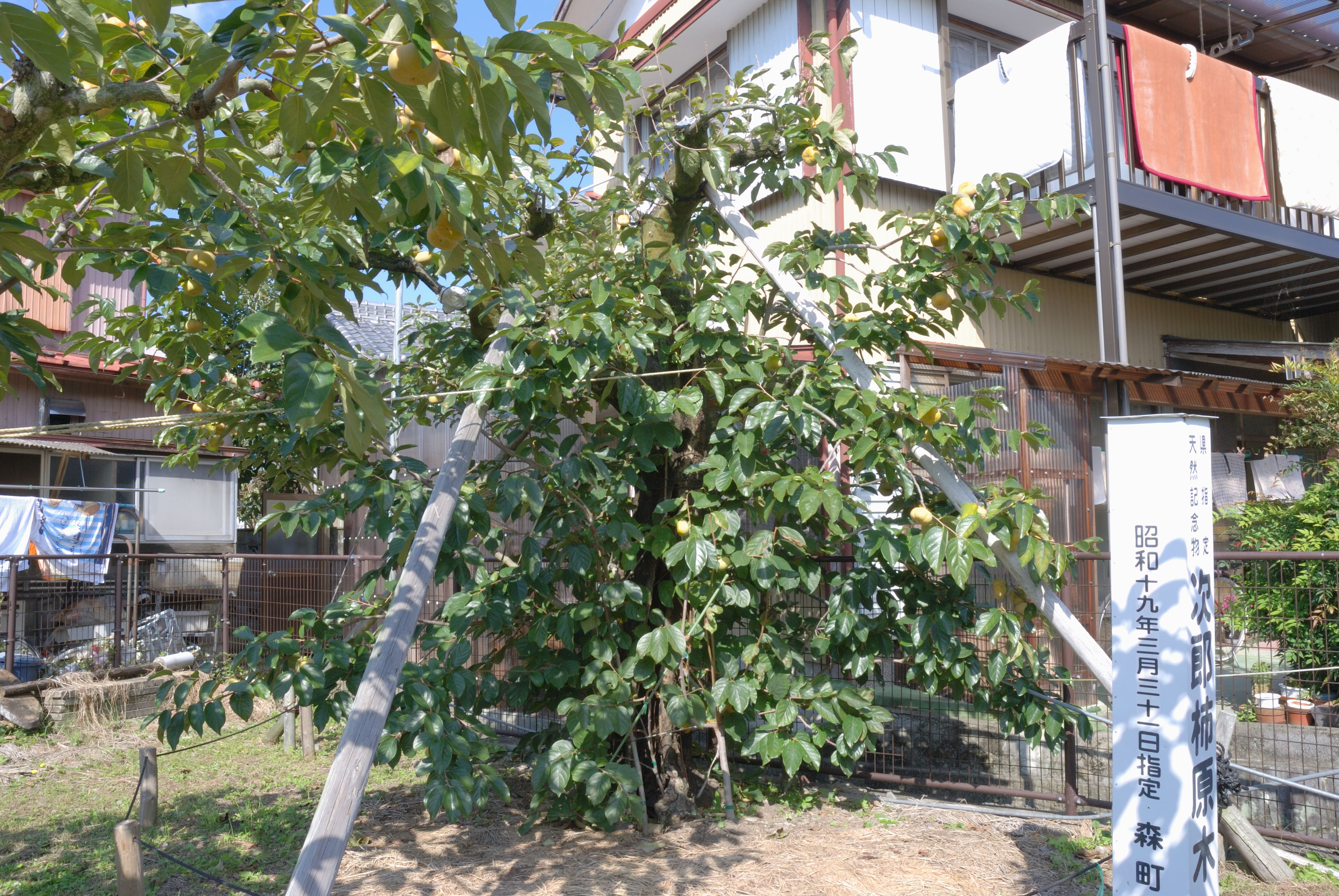 - 지로가키(지로 감): 에도 시대 고카 연간(1844년~1847년)에 모리정 5켄쵸의 백성이었던 마츠모토 지로가 오타가와 강가에서 감나무 묘목을 발견하여 심은 것이 시초이다. 등록 과정의 오류로 인해 '지로가키'라는 표기가 일반적이지만, 모리정에서는 마츠모토 지로에서 유래된 "지로가키"로 표기한다.[9] 1908년 (메이지 41년) 메이지 천황에게 처음 헌상되었고(궁내청 어용달), 현재도 매년 궁내청에 헌상되고 있다. 1944년 (쇼와 19년) "지로가키 원목"이 시즈오카현 지정 천연기념물로 지정되었다.[9]