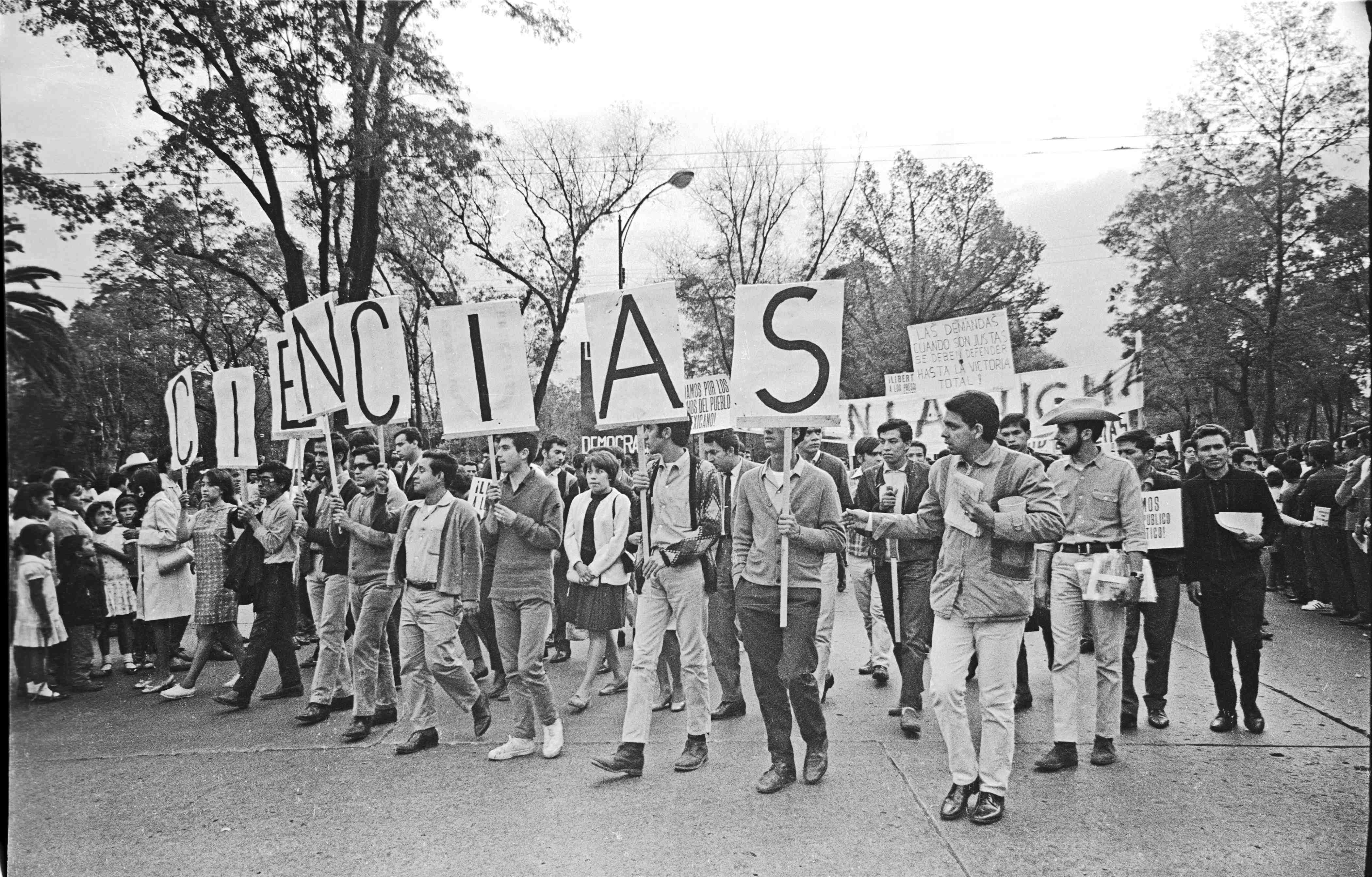 1968년 멕시코 학생 운동은 7월 말, 국립 폴리텍 연구소(IPN)와 UNAM 부속 고등학교 학생들 간의 충돌에 경찰 기동대가 과잉 개입하면서 본격화되었다.[10][11][12] 이 사건은 학생 사회의 큰 반발을 불러일으켰고, 7월 26일에는 경찰 폭력에 항의하는 시위와 쿠바 혁명 지지 시위가 합쳐져 대규모 거리 행진으로 이어졌다. 시위대는 소칼로 광장으로 향하려 했으나 경찰에 의해 저지되었고, 이후 며칠간 멕시코시티 곳곳에서 시위가 계속되며 버스를 불태우는 등 격렬한 양상을 보였다.[13]