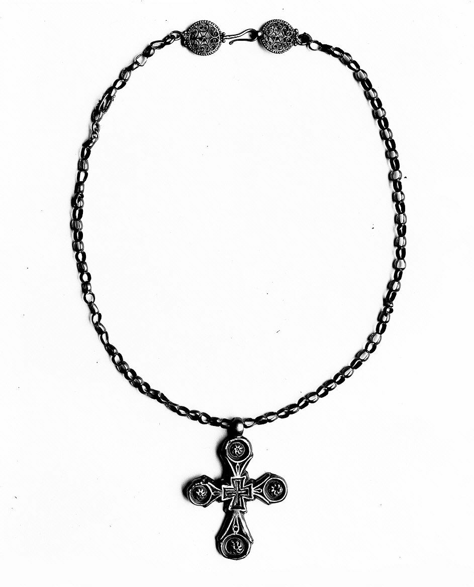 - 펜던트 목걸이: 펜던트 톱과 목걸이를 조합한 펜던트 목걸이는 십자가나 하트 모양, 꽃무늬 등이 있다.[26] 독일에서는 1세기부터 2세기의 것으로 추정되는 십자가가 달린 목걸이('''츠비셴골드펄렌''')가 발견되었는데, 기독교 신자들이 그리스도에 대한 경의를 표하기 위해 착용한 것으로 생각된다. 하트 모양 펜던트에는 성모 마리아가 새겨진 것이 많으며, 소품 보관함으로 이용 가능한 컴팩트 타입도 있다.