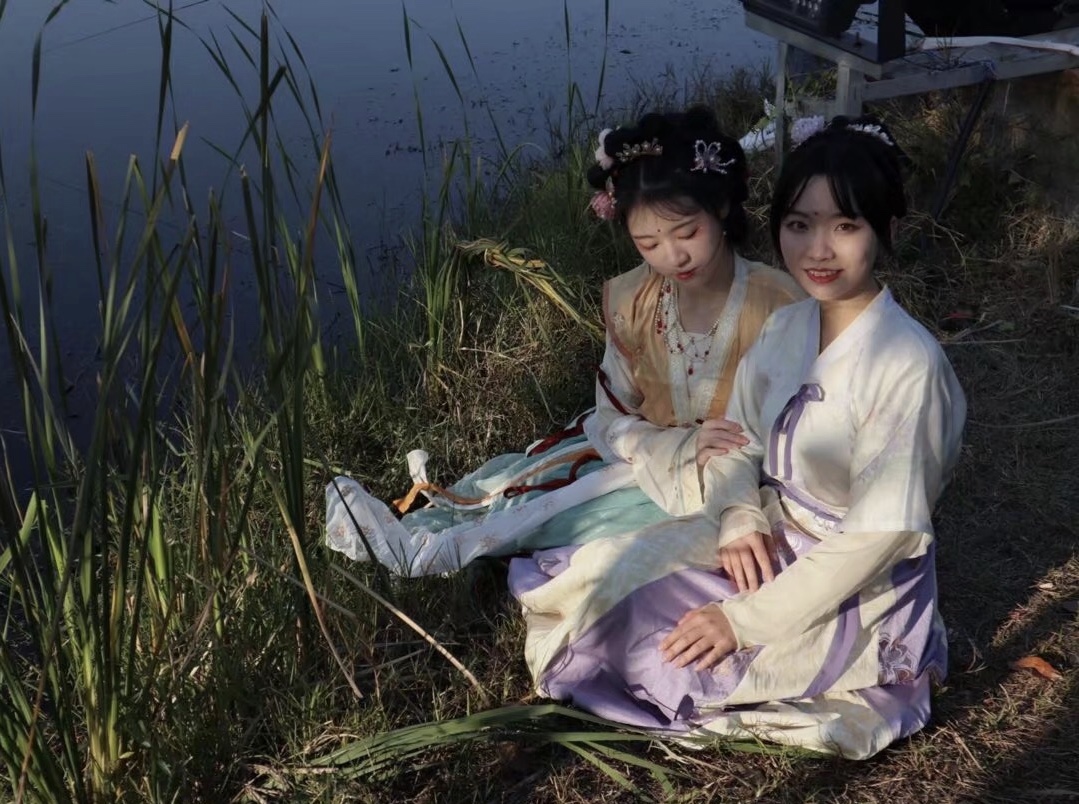 瓔珞|잉루오중국어는 고리 모양의 목 장식 또는 유행하는 목걸이로, 원래 중국의 불교 예술(예: 조각상 및 그림)에 묘사된 불교 장식품이었다. 瓔珞|잉루오중국어는 고대 인도에서 기원하며, 초기 원형은 인도 장식품인 ''keyūra''이다.[18][19]'' ''keyūra''의 묘사는 불교와 함께 중국에 소개되었다.[18][19]'' 둔황에서 발견되는 것과 같은 중국의 瓔珞|잉루오중국어 묘사는 지리적 특성으로 인해 외래(비중국) 문화와 토착 중국 문화의 문화적 통합을 보여주는 형태와 스타일로 발전했다.[18]'' 瓔珞|잉루오중국어는 결국 불교 예술의 장식품에서 당나라 시대에 실제 목걸이로 발전했다.[18]'' 瓔珞|잉루오중국어는 그 후 수세기 동안 중국 사회에서 고전적인 형태의 목걸이가 되었다.[18]'' 오늘날에도 착용되고 있으며, 특히 한푸 운동 이후 한푸 애호가들이 사용하는 일반적인 한푸 부속품으로 사용되고 있다.[20] 다양한 스타일, 모양 및 재료로 제공된다.[20]