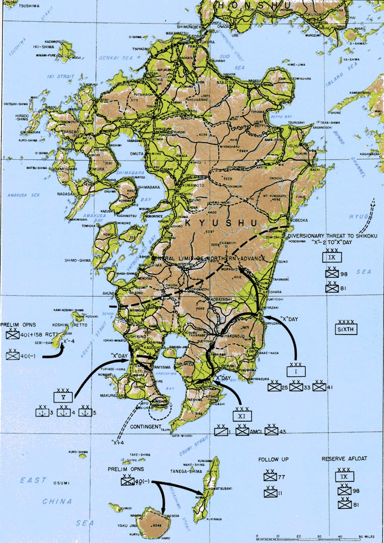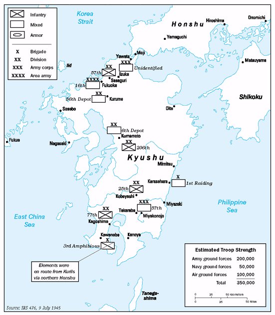 "규슈 작전에서 총 적대 세력은 10개 사단을 넘지 않으며, 이 수준은 신속히 작전을 수행할 수 있다."[238]