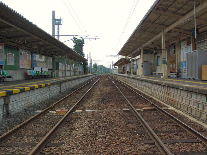 구마모토현 구마모토시에 위치한 가메이역은 1913년 개업한 구마모토 전기 철도 기쿠치선의 무인 지상역으로, 단선 승강장 1면 1선을 갖추고 있다. - 호히 본선 - 미에마치역