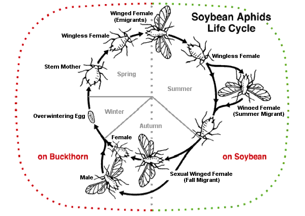 이성생식을 하는 진딧물의 경우, 암컷은 임신한 상태로 태어나 암컷 자손만을 생산하여 매우 빠르게 번식할 수 있다. 그러나 대부분의 종은 일 년에 한 번 유성 생식을 하는데, 이는 가을의 환경 변화에 의해 유발되며 암컷이 배아 대신 알을 발달시키게 한다.[26]