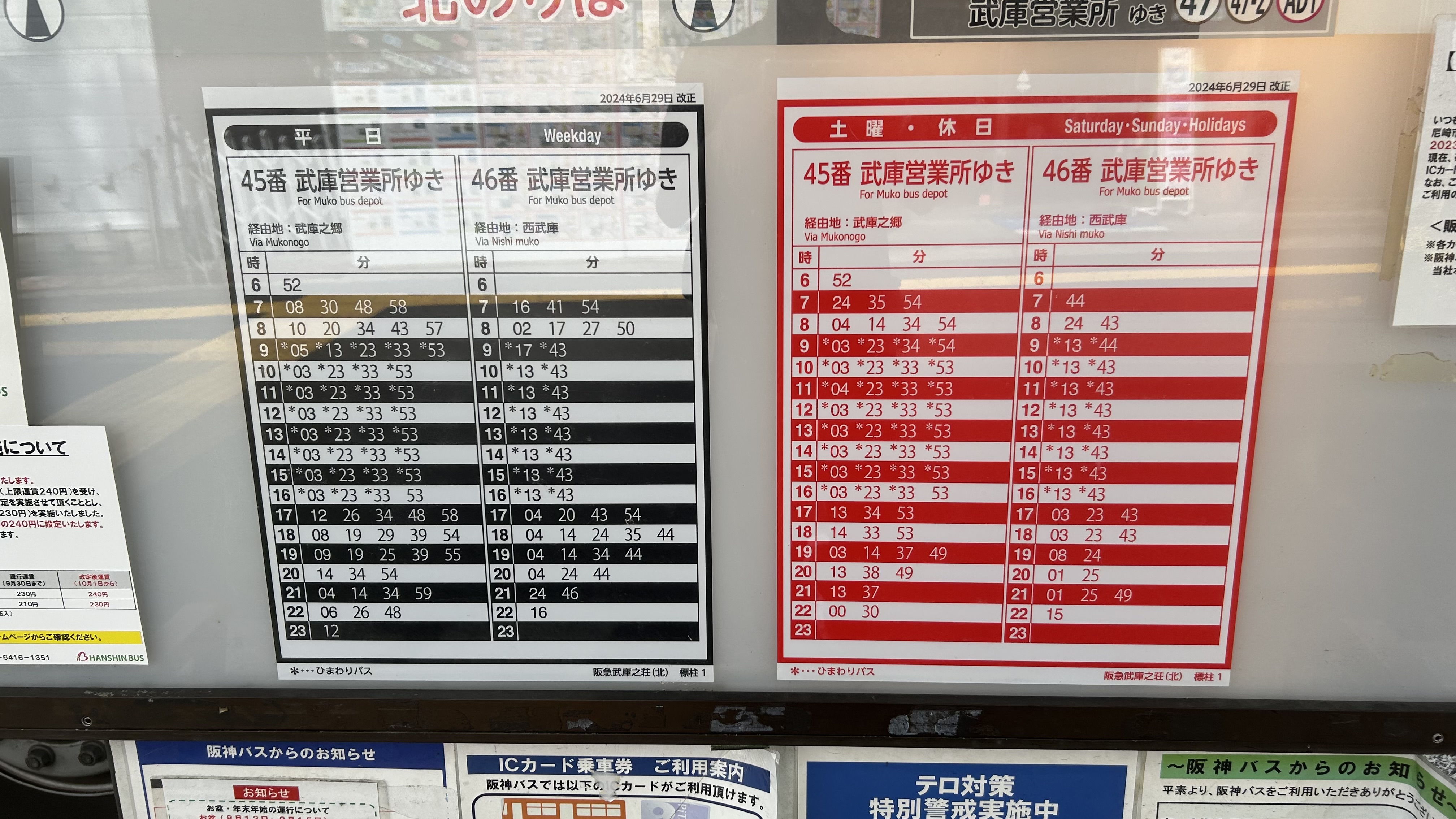 다이아 개정 때 역별 시간표에는 당시 벌어졌던 니시노미야키타구치 역 개량 공사 기간에만 운행 예정인 내용을 명기했었다.