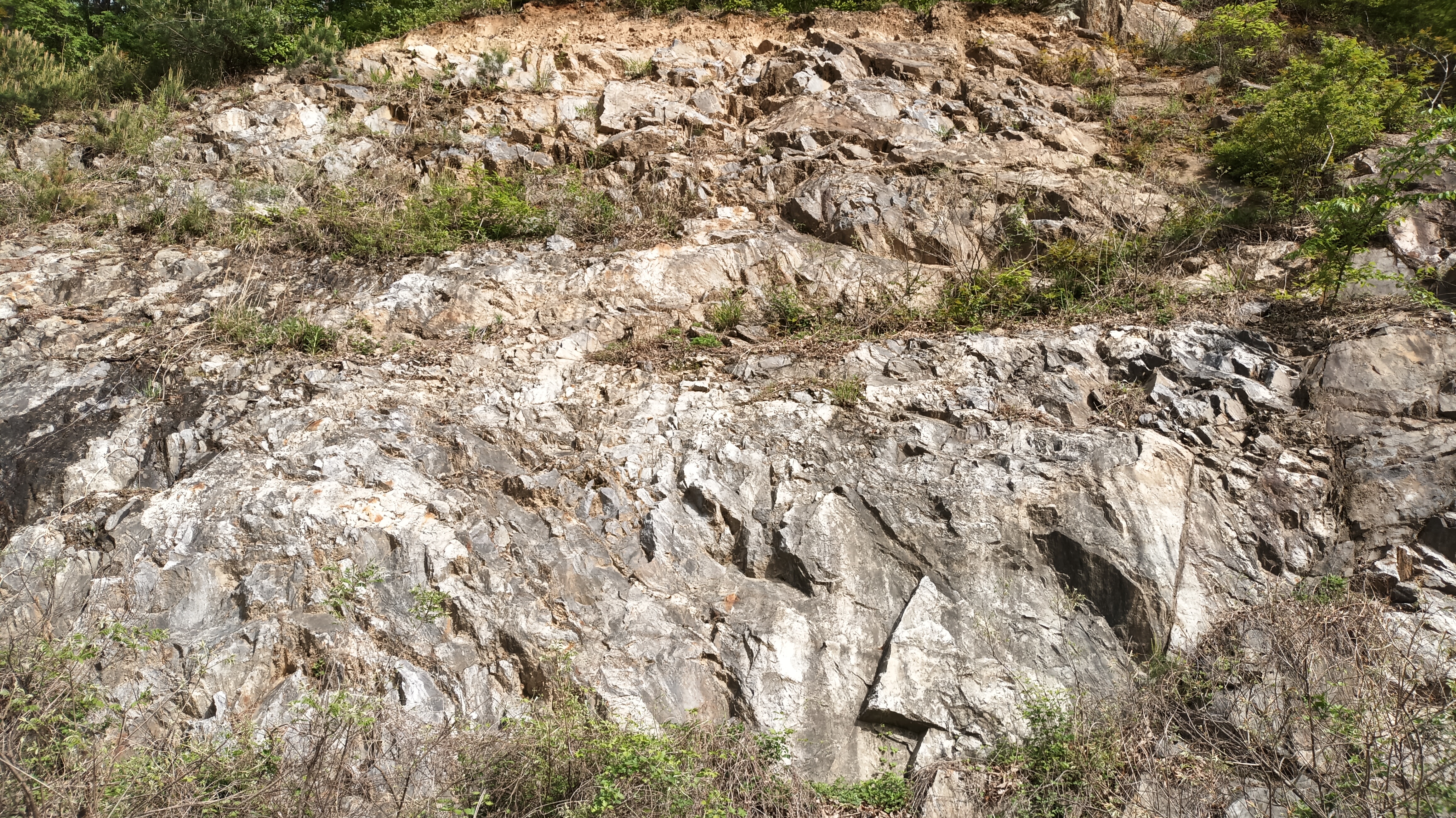 중부 석회암층원암회색, 청회색, (담)회색 엽리상 석회암