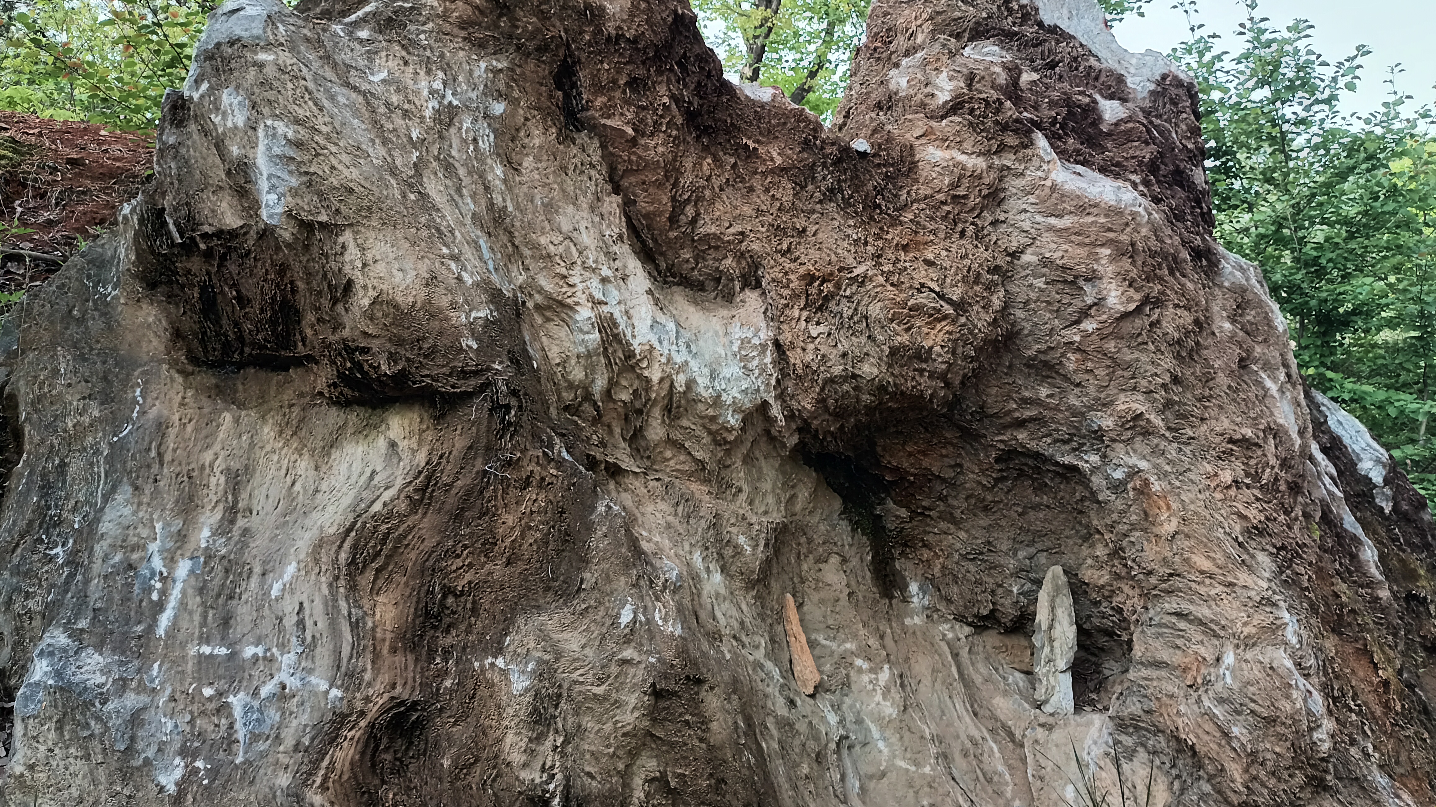 마성면 하내리에서 가은읍 왕능리와 성유리, 전곡리를 지나 농암면 농암리까지 이어지는 대석회암층군은 고회질 석회암 내지 고회암(苦灰巖)으로 구성되는 것이 특징적이다. 호계면에 분포하는 대석회암층군과는 달리 고회질 석회암이 절대 우세한 상부 지층이 발달되어 있다.[1]
