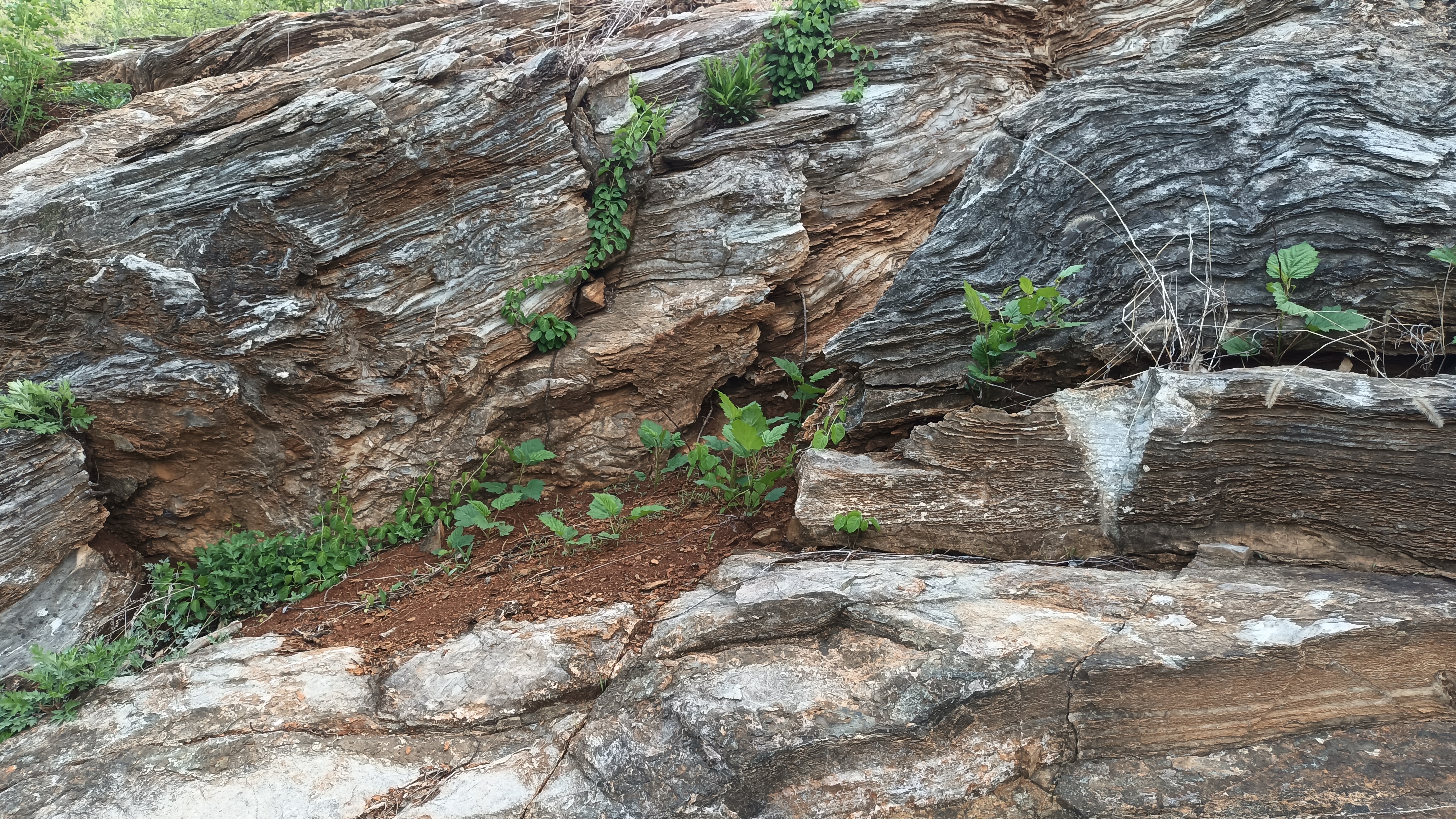 제5층회색, 청색, 흑색, 적색 석회암