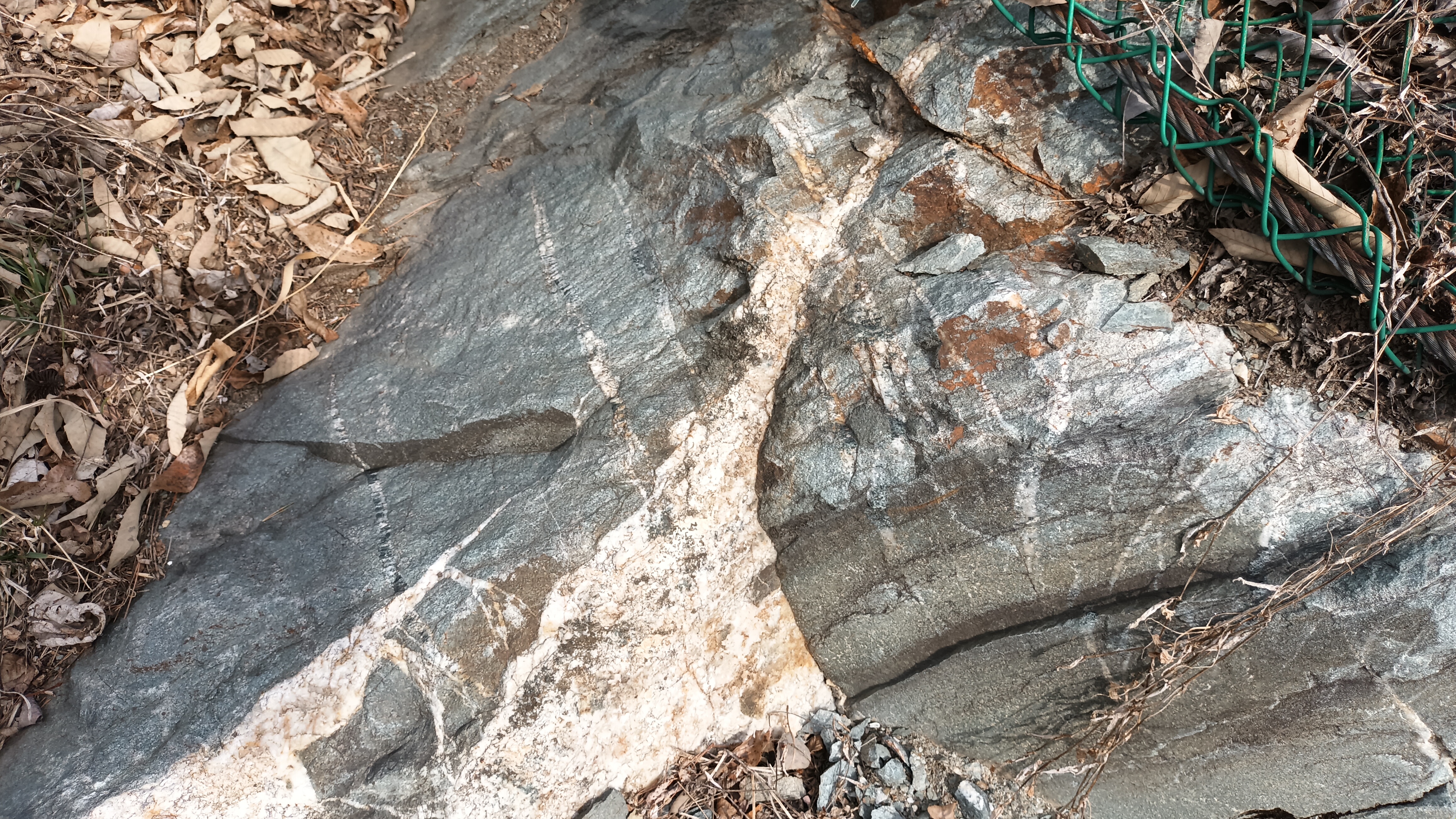 흑운모 화강암질 편마암을 관입한 암맥, 문경시 산북면 이곡리 지방도 제923호선 도로변