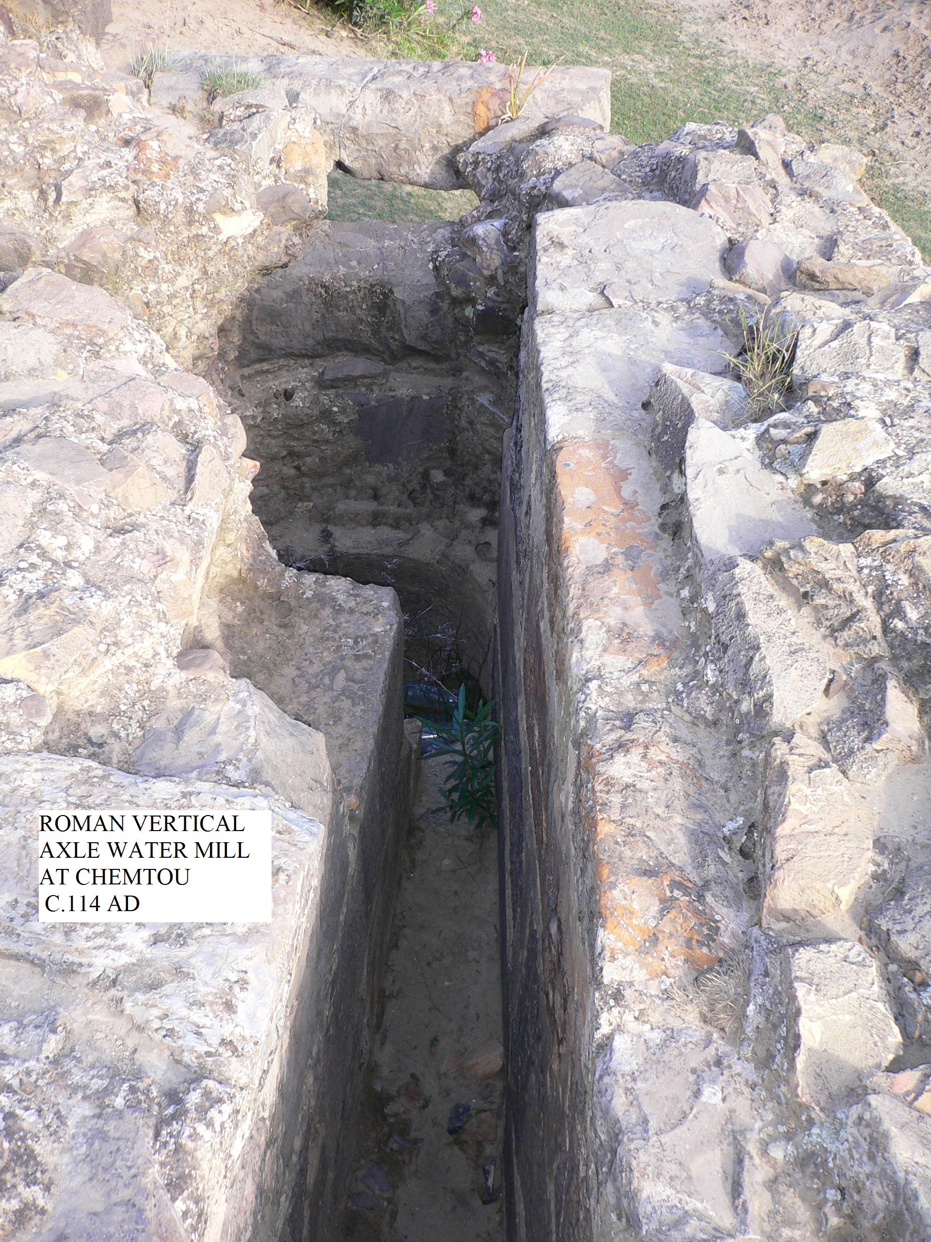 물레방아는 수백 년 동안 산업 동력으로 사용되었으나, 크기, 유량 및 낙차의 제한이 있었다. 로마 제국 시대에는 튀니지의 쳄투와 테스투르에서 초기 형태의 수력 터빈이 발견되었다. 이는 경사진 날개를 가진 수평 물레가 물이 채워진 원형 샤프트 바닥에 설치된 형태로, 밀 레이스에서 유입된 물이 소용돌이치는 물 기둥을 만들어 바퀴를 회전시키는 방식이었다.