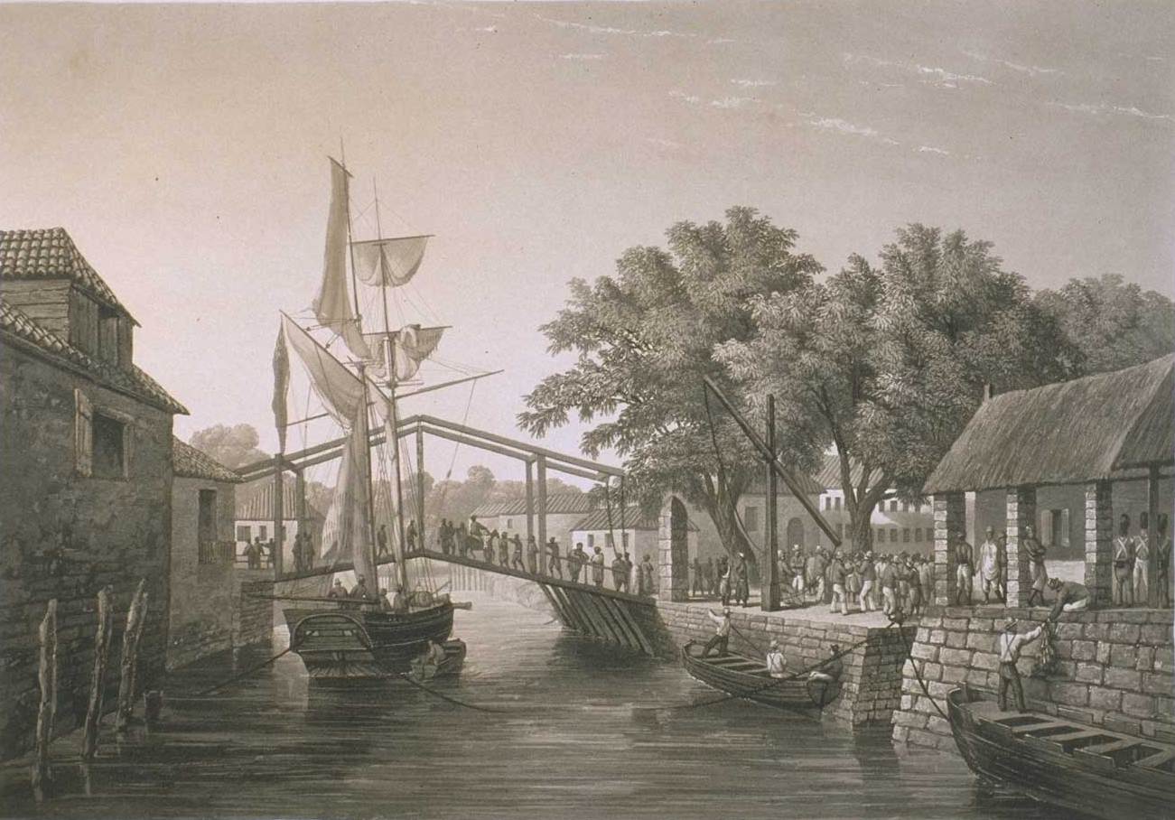 마환의 기록에 따르면, 믈라카는 잘 정비된 도시였으며, 믈라카 강을 기준으로 남쪽은 통치자 구역, 북쪽은 외국 상인 거주 지역으로 나뉘었다. 다리 위에는 시장이 있었고, 작은 선박과 외국 해상 선박이 접근하기 쉬웠다.[15]