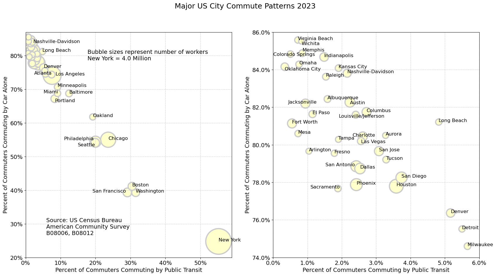 대부분의 미국 도시에서, 출근 시 단독으로 차량을 이용하는 비율이 가장 높다.