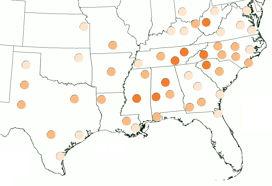 - 새로운 이주민 유입 지역: 북부 및 다른 지역으로부터의 인구 이동으로 인해, 애틀랜타, 오스틴, 샬럿 등 대도시 지역은 현대적인 대도시 정체성을 흡수하면서 남부 문화가 희석되는 경향을 보였다. 그러나 이들 지역은 여전히 뚜렷한 "남부" 정체성을 보존하고 있다.[41]