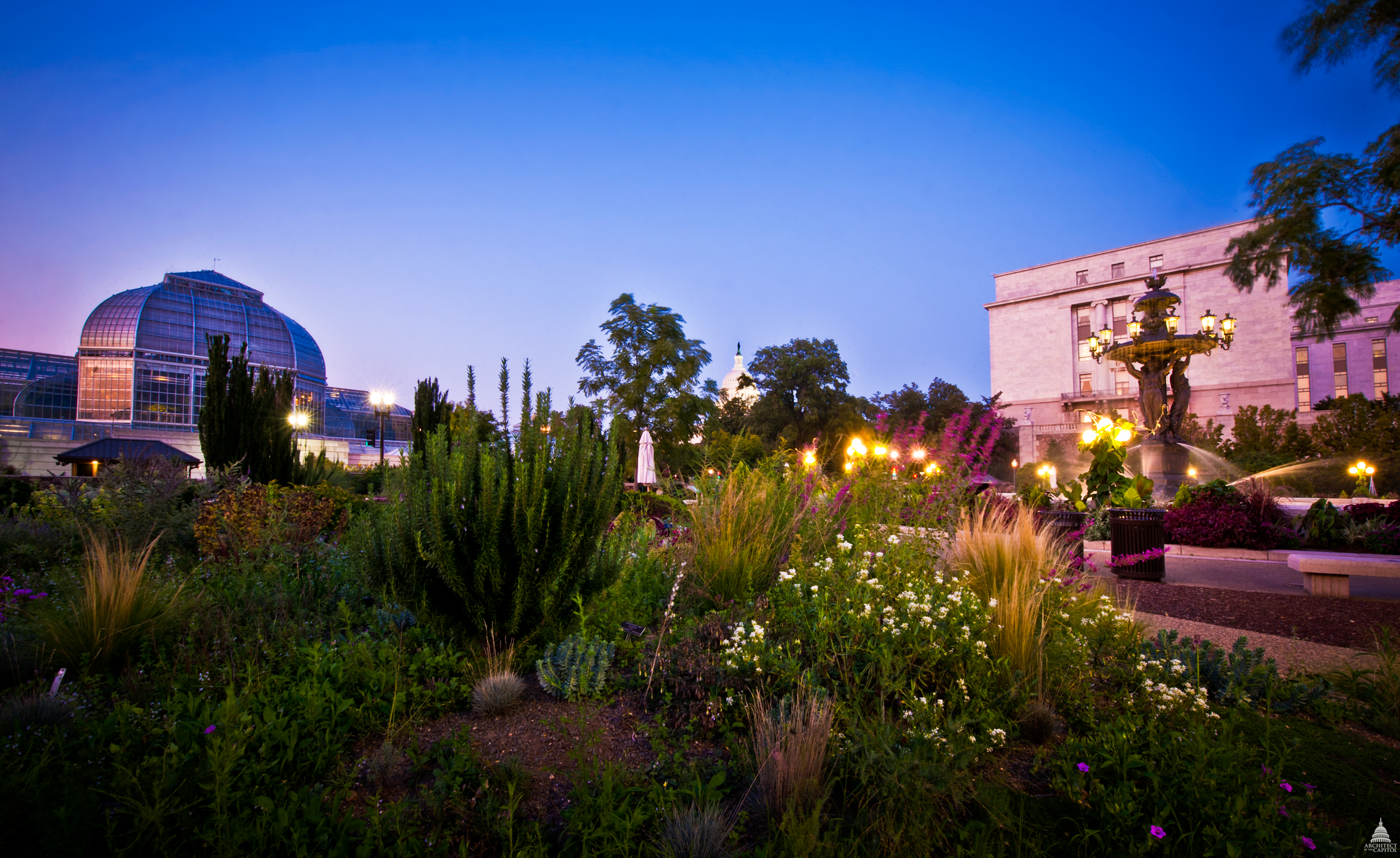 미국 워싱턴 D.C.에 있는 예술 및 과학 진흥을 위한 컬럼비아 연구소는 1816년에 식물원 설립을 처음 제안했다. 1820년 의회의 법에 의해 토지를 받았는데, 그 토지는 국회의사당 서쪽에 위치해 있으며 펜실베이니아 애비뉴와 메릴랜드 애비뉴 사이의 퍼스트 스트리트에서 서드 스트리트까지 뻗어 있었다. 이 시설은 1837년 이 협회가 회의를 중단하면서 운영을 중단했다. 그러나 남태평양의 윌크스 탐험대가 식물 컬렉션을 가져오면서 1842년에 다시 설립되었다.[1]