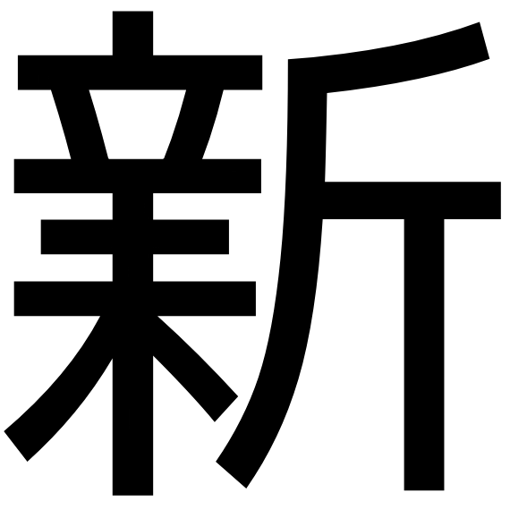 제자의 ‘신’(新) 자는 ‘나무 목’(木) 부분에 가로 막대가 하나 더 있는 ‘미’(未)와 같은 글자체를 사용하고 있다(일본 신문#제자의 ‘신’(新)의 글자체를 참조).