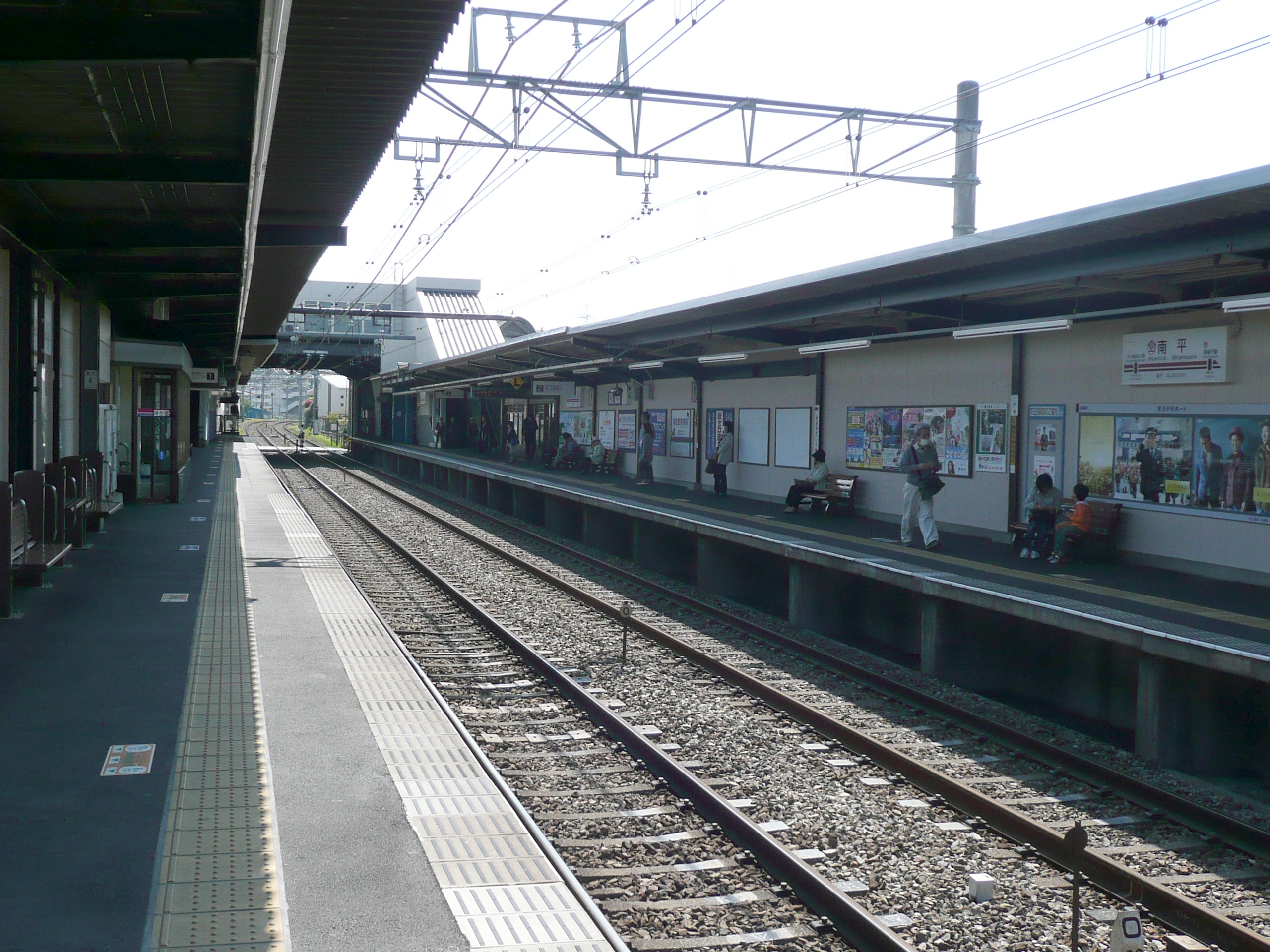 게이오선 구간 급행(상행선만), 쾌속(하행선만), 각역정차 열차는 다카하타후도역 (KO29) - '''미나미다이라역 (KO30)''' - 히라야마조시코엔역 (KO31) 순으로 정차한다.