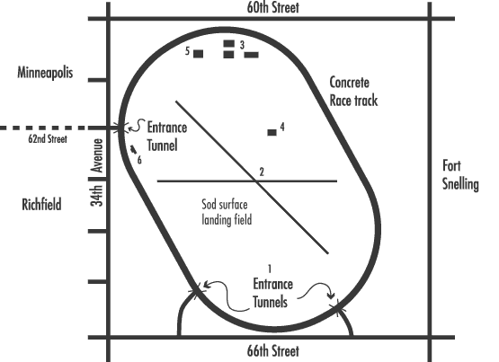 미니애폴리스 세인트폴 국제공항은 트윈 시티 스피드 웨이 자동차 경주 트랙이 있던 자리에 1921년 스피드웨이필드란 이름으로 개항하여 울드체임벌린필드 공항으로 사용되었다. 1944년 미니애폴리스·세인트폴 메트로폴리턴, 울드체임벌린필드로 이름을 바꾸었다.[10]