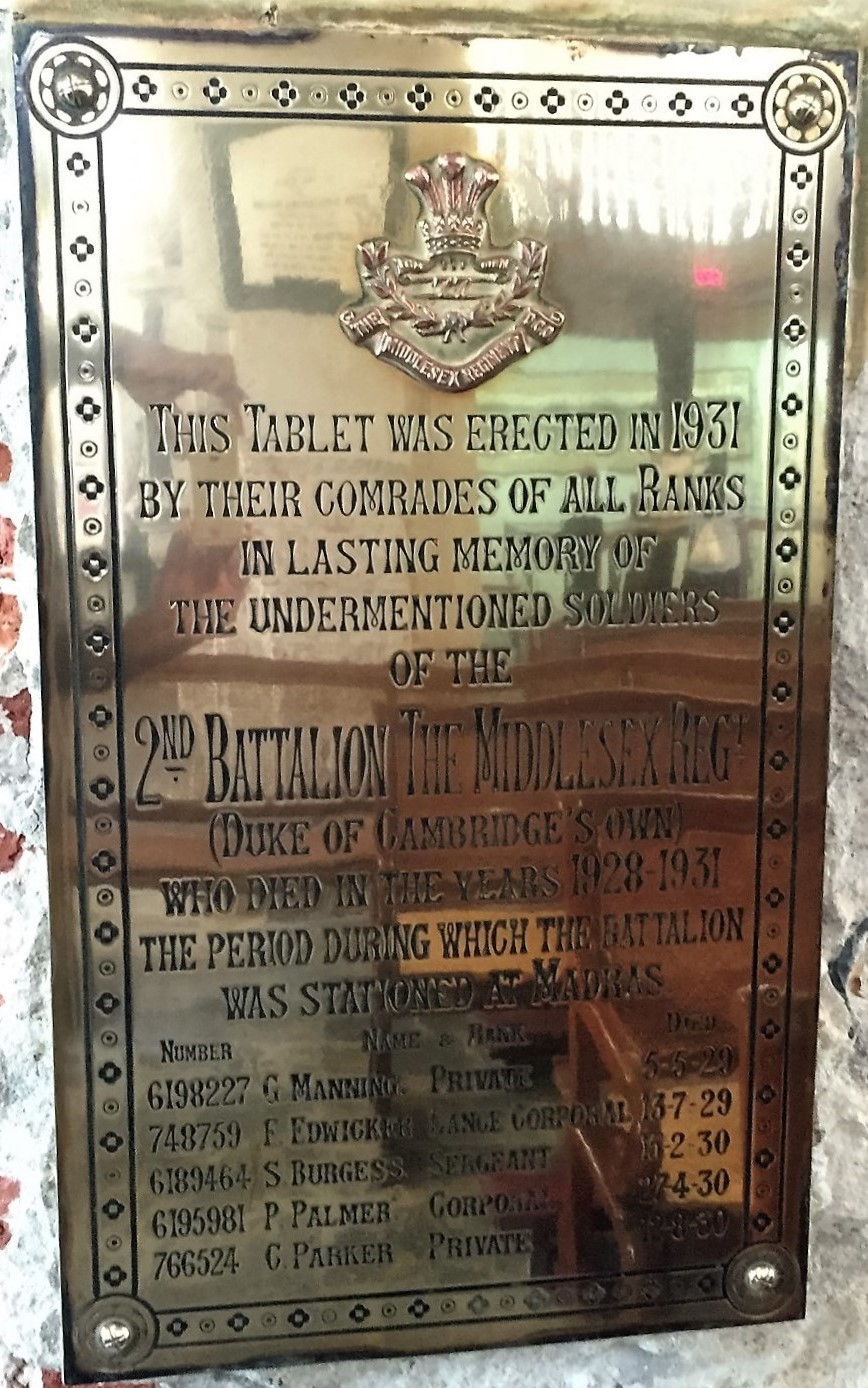 1881년 창설 당시 연대 명칭은 '''케임브리지 공작 직속 (미들섹스 연대)'''였다.[8] 이 연대는 1876년에 부여받은 77 보병연대에서 ''"케임브리지 공작 직속"'' 명칭을 물려받았다. 또한 기장과 배지에 조지 왕자, 케임브리지 공작의 왕관과 암호를 사용할 수 있었다.[9] 1810년에는 인도에서 20년간 복무한 공로로 웨일스 공의 깃털과 모토를 수여받았다.[10]1921년, 연대 명칭은 '''미들섹스 연대 (케임브리지 공작 직속)'''으로 변경되었다.[11] 조지 왕자, 케임브리지 공작은 1898년부터 1904년 사망할 때까지 연대의 명예 대령이었다.[12] 연대 행진곡은 '맨리 파워'와 '패디의 자원'(빠른 곡), '캘리도니안'과 '오래된 골의 의복'(느린 곡)이었다.[13]