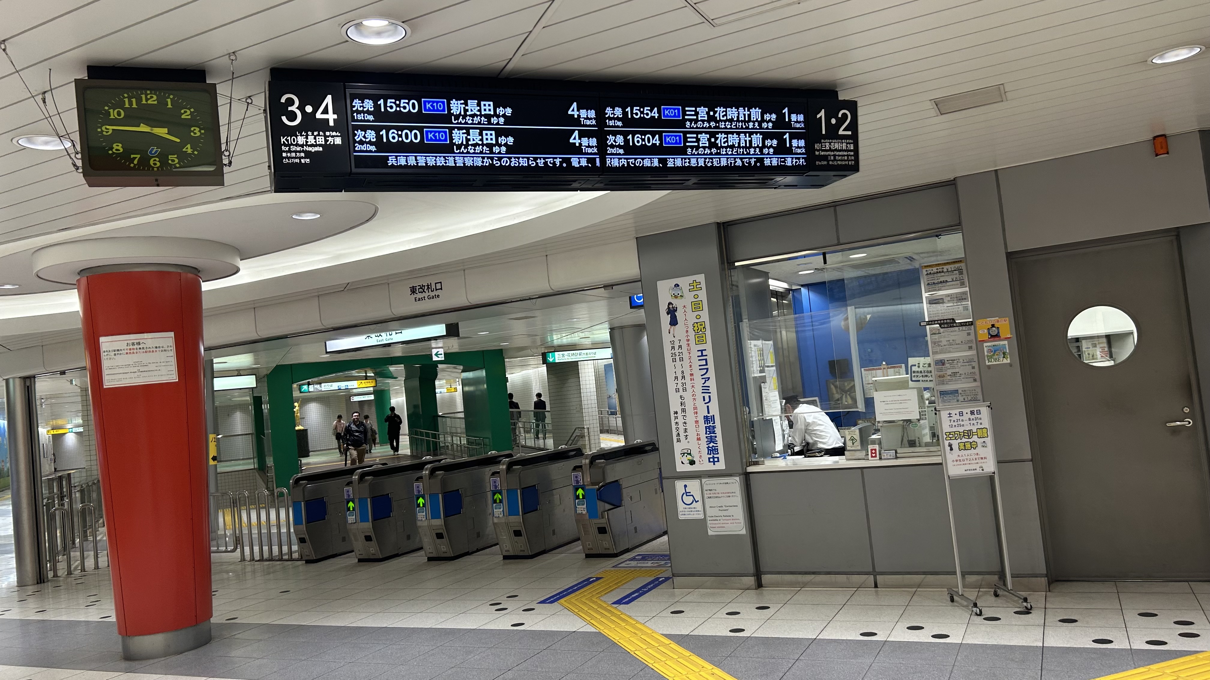 산노미야역은 효고현 고베시 주오구에 위치한 교통의 중심지로, 여러 철도 노선이 교차하며 고베 시내와 주변 지역을 연결하고, 역 주변은 고베 시 최대의 번화가를 형성하여 중심 기능을 수행한다.