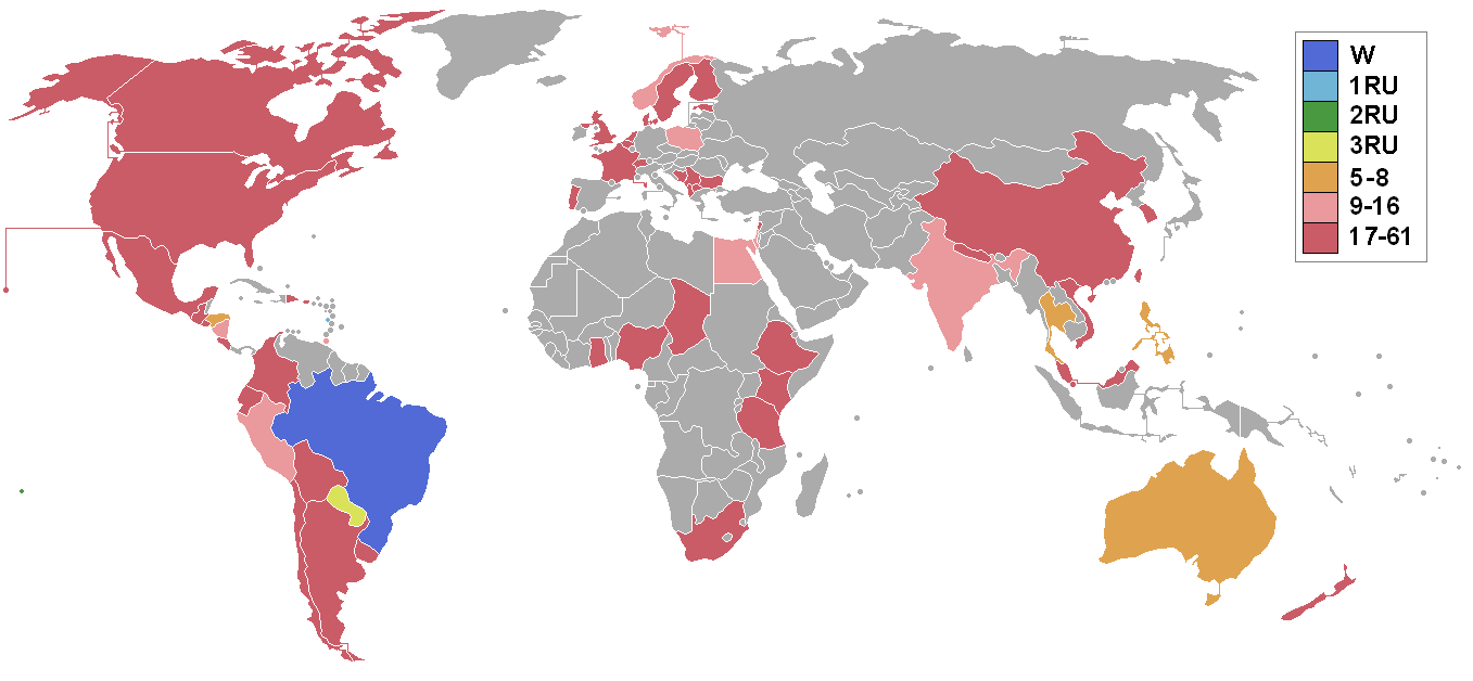 Top 8에는 오스트레일리아, 온두라스, 필리핀, 태국 대표가, Top 16에는 이집트, 인도, 이스라엘, 니카라과, 노르웨이, 페루, 폴란드, 트리니다드 토바고 대표가 선발되었다.[1]