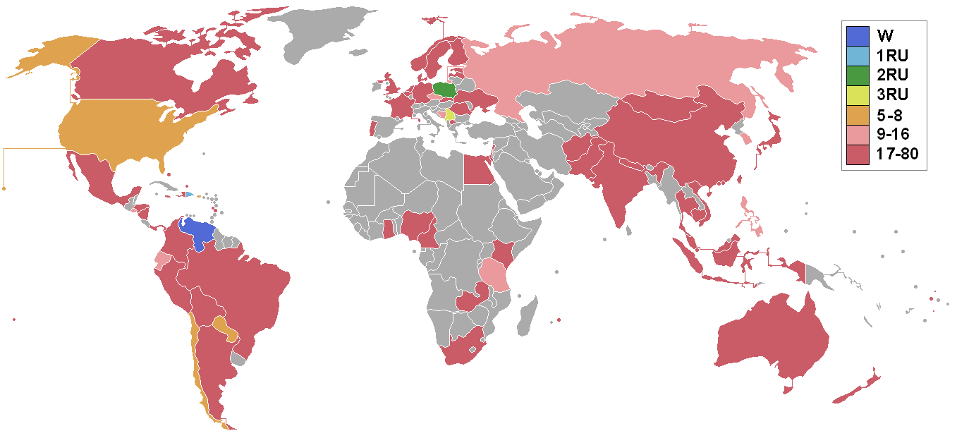 첫 참가 국가 | 바하마 캄보디아 카메룬 아이티 홍콩 인도네시아 자메이카 마카오 모리셔스 몽골 니우에 파키스탄 루마니아 사모아 슬로바키아 세인트루시아 토켈라우 터크스 케이커스 제도 잠비아 |
