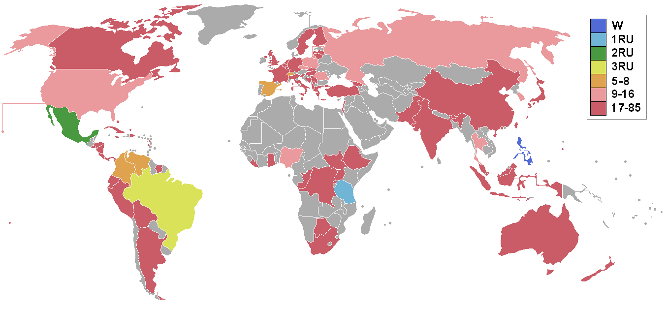 불참 | 벨리즈 카메룬 덴마크 피지 과테말라 아이슬란드 홍콩 카자흐스탄 케냐 네팔 니우에 노르웨이 파라과이 시에라리온 세인트루시아 티베트 트리니다드 토바고 우크라이나 미국령 버진아일랜드 베트남 잠비아 짐바브웨 |