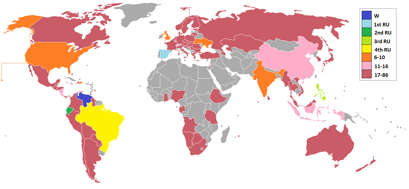 콜롬비아 | 루시아 알다나[61] | 21 | 칼리 |