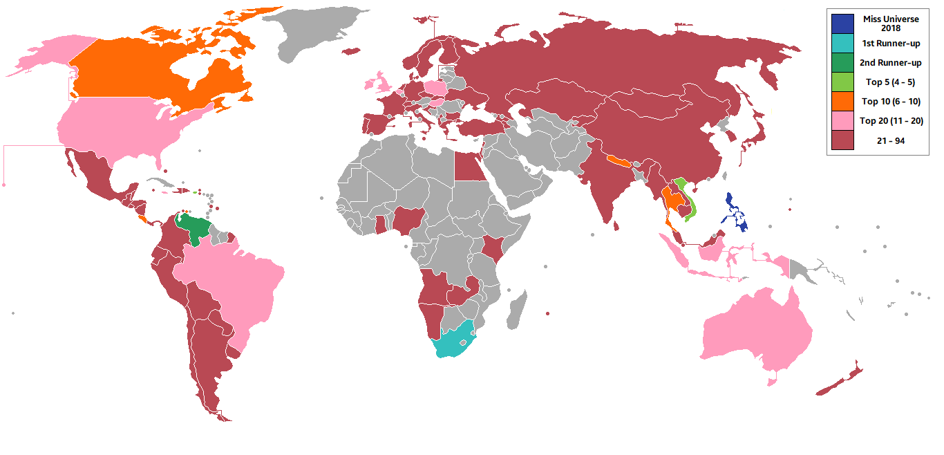 2018년 미스 유니버스 대회에는 94명의 참가자가 참가했다.[34]