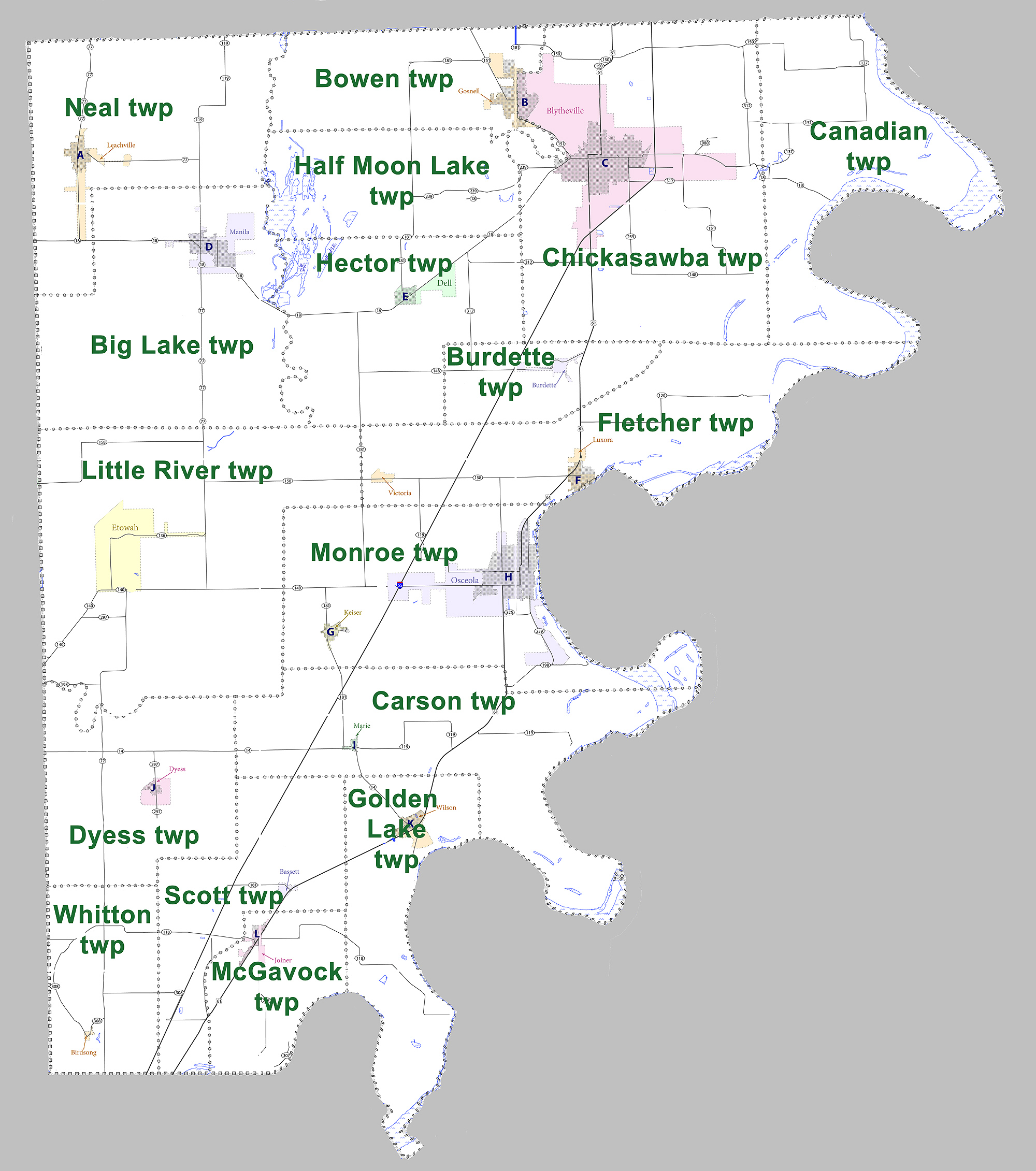 군청 소재지 | 블라이스빌 및 오세올라 (공동) |