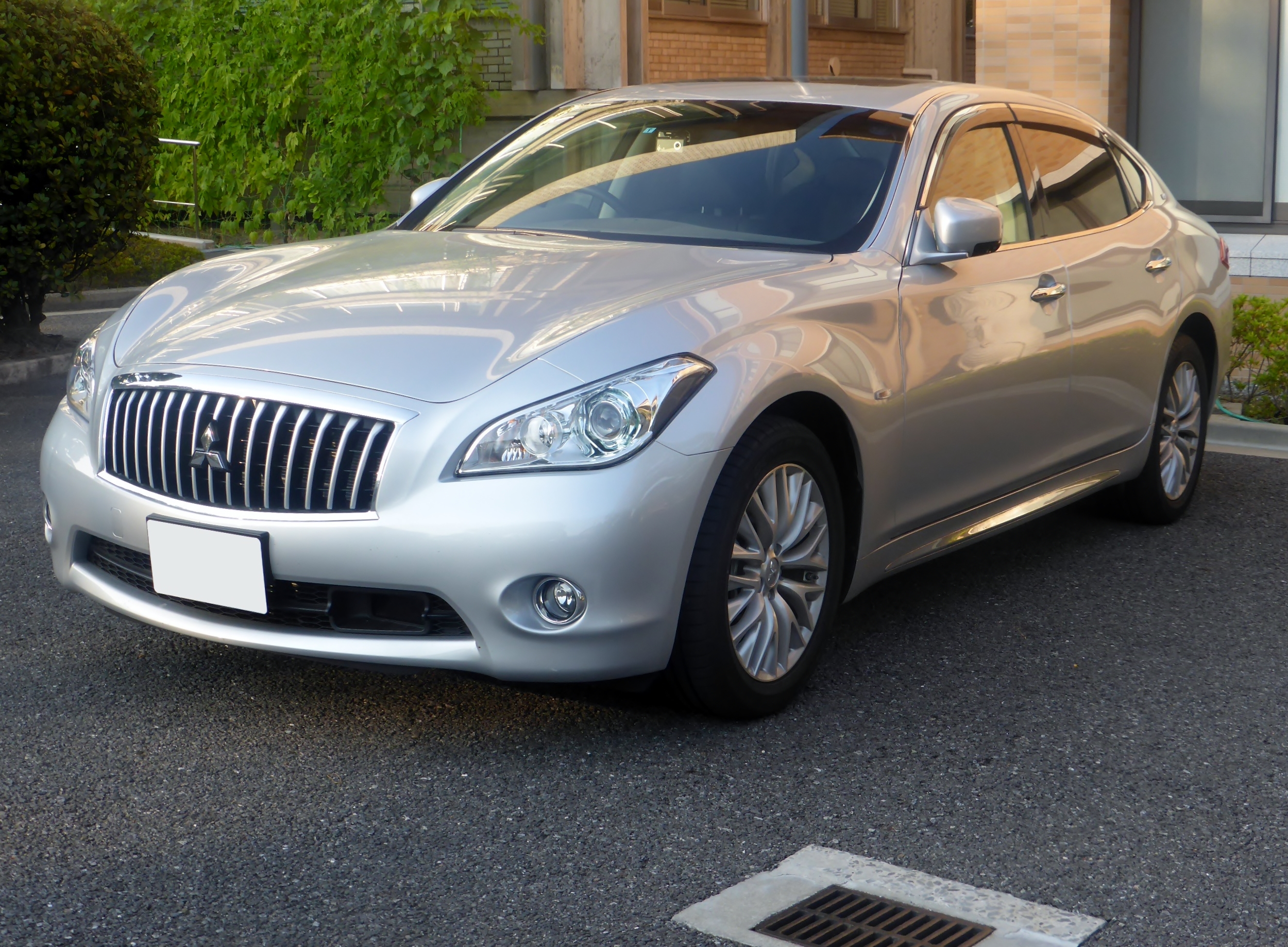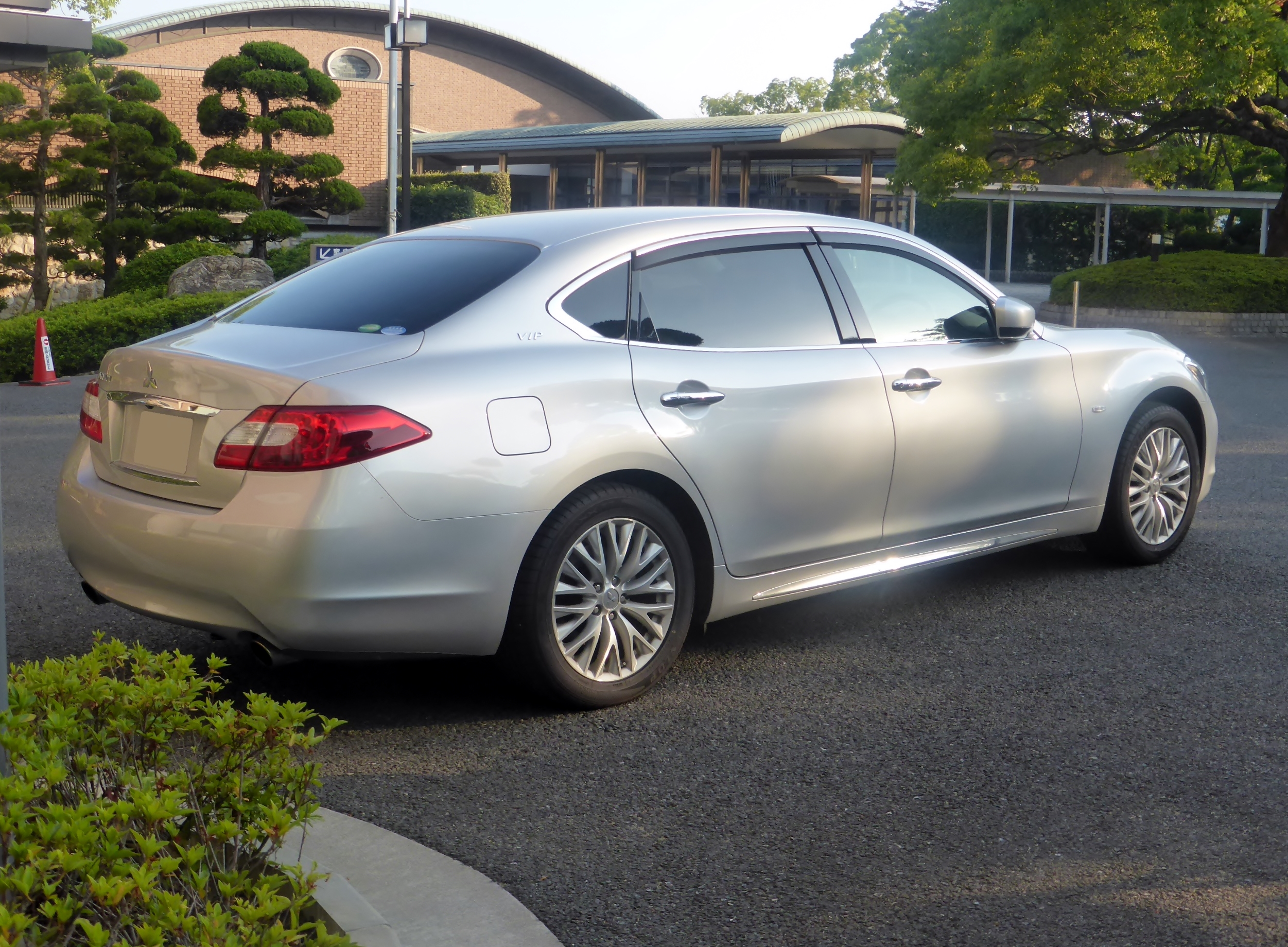 VQ35HR V6 3.5L 가솔린 하이브리드 엔진과 7단 자동변속기를 탑재했다. 외관은 시마와 차별화되었으며, "Pure Drive/Hybrid" 배지는 부착되지 않았다. 시마에서 가져온 격자형 후면 전동식 스크린 등 다양한 항목이 제공되었다. "VIP"라는 단일 트림 패키지로만 제공되었으며, 이는 시마의 VIP G 트림에 해당한다.[9] 4륜구동 시스템은 제공되지 않았으며, CarWings GPS 내비게이션 시스템이 포함되었다.