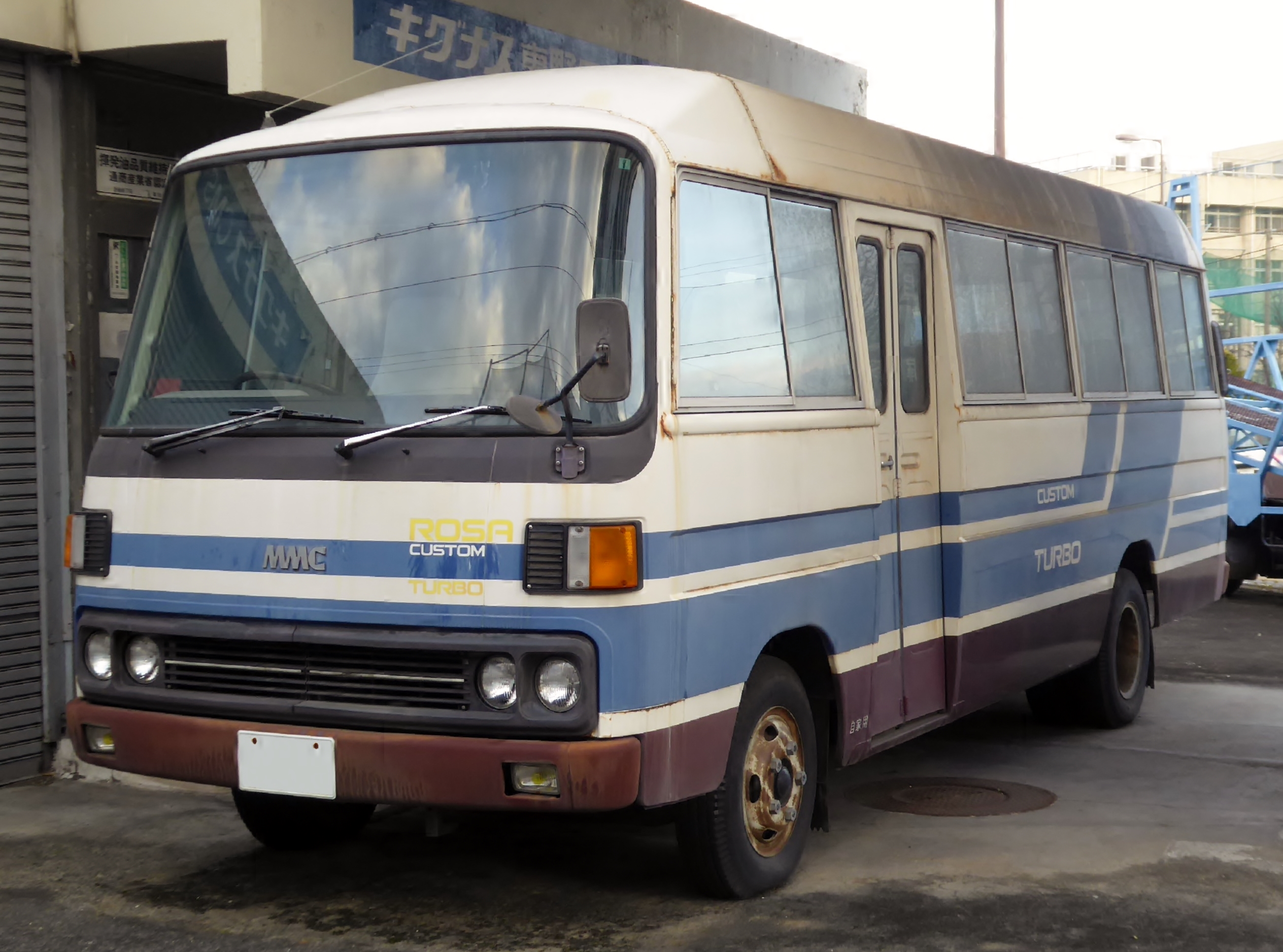 1960년, 신미쓰비시중공업(현재의 미쓰비시중공업 및 미쓰비시 자동차 공업)에서 "미쓰비시 로자"를 출시했다.[1] 로자는 중형 트럭 주피터를 기반으로 만들어졌으며, 메르세데스-벤츠 L319의 영향을 받은 디자인으로 "달마 로자"라는 별명을 얻었다. 당시 국산 마이크로 버스 중 유일하게 직렬 6기통 디젤 엔진을 탑재하고, 전장 6 m급 (이후 7m 모델도 추가) 모델을 갖춘, 영업용 차량에 가까운 특징을 지녔다.