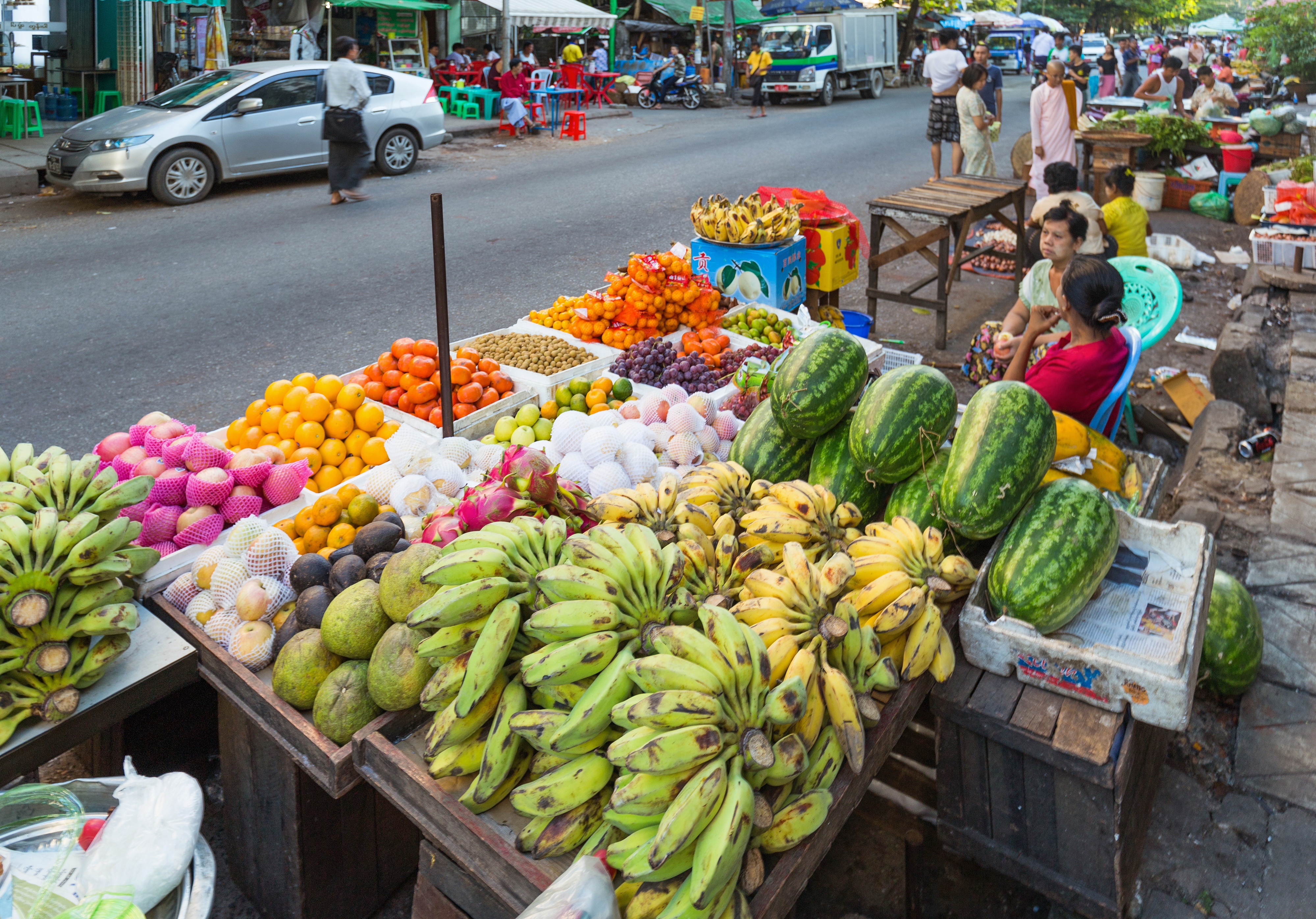미얀마에서는 ''세인탈론''(စိန်တစ်လုံး|세인딸론my), ''마 칫 수''(မချစ်စု|마 칫 수my), ''먀 챡''(မြကျောက်|먀 챡my)을 포함한 300가지의 망고 품종이 재배된다.[11][71] 미얀마에서는 다음과 같은 품종을 포함하여 13종의 바나나가 지역적으로 재배된다:[72]