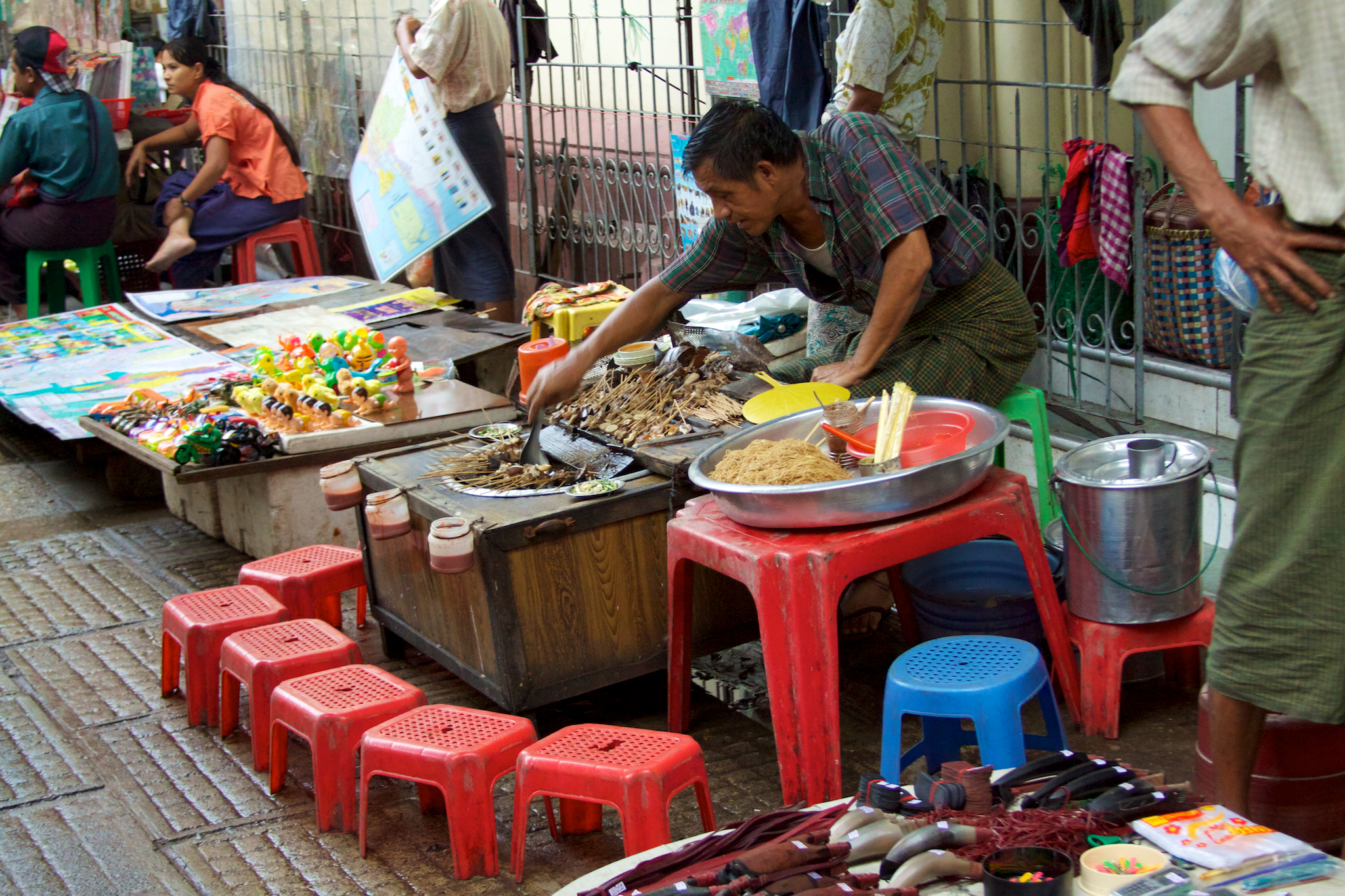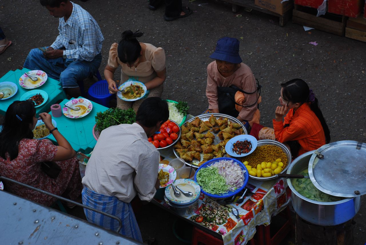 남부 인도 요리에서 유래된 퓨전 체티아르 (ချစ်တီးကုလား|칫띠 깔라my) 요리도 도시에서 인기가 있다.