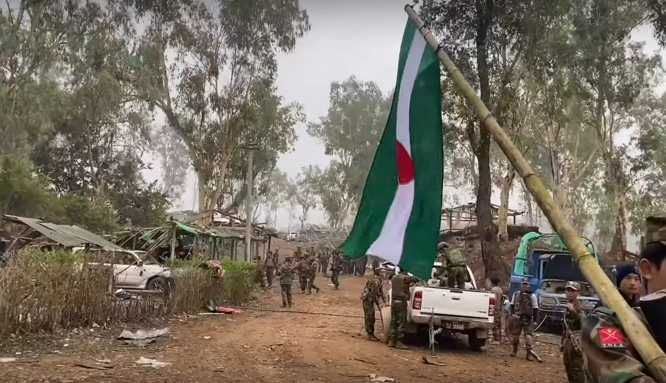 2023년 10월 27일, AA·미얀마 민족민주동맹군(MNDAA)·타앙 민족해방군(TNLA)으로 구성된 삼형제 동맹이 1027 작전을 실행했다[700]。동 작전으로 3일 만에 57개의 미얀마군 기지가 제압되었다[701]。11월 6일에는 PDF에 의해 자가잉 지역의 이 함락되었다. 현(District) 레벨의 도시가 저항 세력의 지배하에 들어간 것은 처음이었다[702]。이 작전은 2021년 이후 미얀마군이 겪은 최대의 패배였다고 보도되었다[703][704]。미얀마군이 삼형제 동맹과 정전 합의를 맺었을 때, 국군파 인플루언서와 승려들 사이에서 민 아웅 흘라잉의 사임을 요구하는 목소리가 잇따랐다[705]。