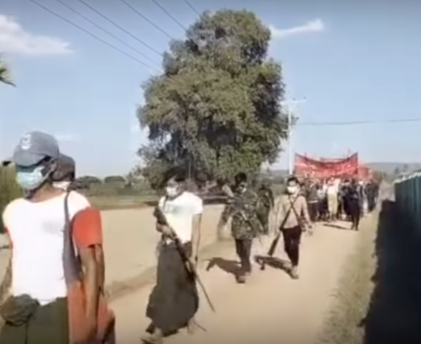 2021년 쿠데타 이후, 국가행정위원회(SAC) 군대의 필요성이 증가하면서 소수민족 무장 단체(EAO)가 강화되었다.[74] 카친 독립군은 2월부터 공세를 펼쳐 3월 25일 알라 밤의 군사 기지를 점령했다.[74] 다음 날, 카렌 민족 해방군(KNLA)은 군사 기지를 공격하여 시위 시작 이후 첫 공격에서 SAC 군인 10명을 사살했다.[75] 3월 27일에는 시위대가 처음으로 군인에 맞서 직접 만든 무기를 공개적으로 사용하며 시위 캠프를 공격하는 보안군을 겨냥한 2021년 칼레이 충돌이 발생했다.[76]