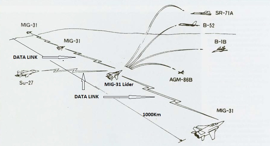 MiG-31에는 RK-RLDN 및 APD-518[26] 디지털 보안 데이터링크가 장착되었다. RK-RLDN 데이터링크는 지상 관제 센터와 통신하기 위한 것이다. APD-518 데이터링크는 4대의 MiG-31 편대가 서로 최대 200km 이내에서 레이더가 생성한 데이터를 자동으로 교환할 수 있도록 한다. 또한 MiG-23, 25, 29 및 Su-15, 27과 같이[28] 더 정교하지 않은 항전 장비[27]를 갖춘 다른 항공기가 MiG-31이 발견한 표적(각 MiG-31 항공기당 최대 4개(장거리))을 향하도록 유도할 수 있게 한다. A-50 AEW 항공기와 MiG-31은 항공 및 지상 레이더 표적 지정[29]뿐만 아니라 방공[30] 정보도 자동으로 교환할 수 있다. MiG-31에는 레이더 및 적외선 범위의 전자전 장비가 장착되어 있다.[38]
