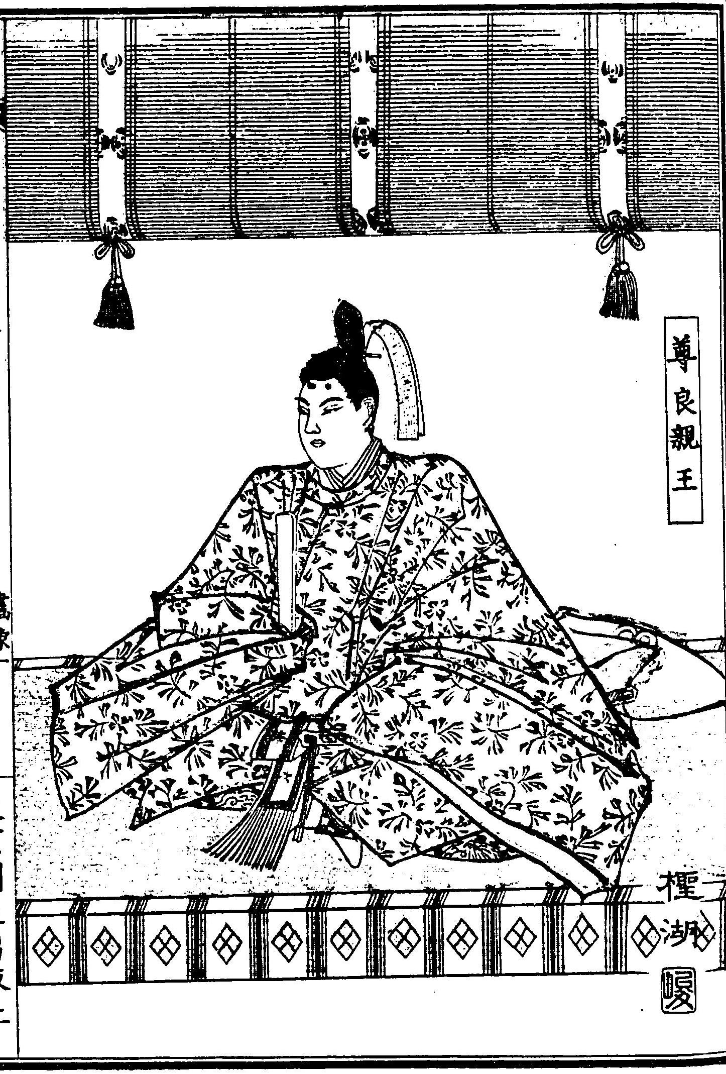 고다이고 천황의 첫째 아들인 손량 친왕은 학문과 용모가 뛰어났으며, 곧 황태자가 될 것이라고 기대를 받았다. 그러나 호조 도쿠소케의 호조 다카토키의 방해로 인해 다음 황태자는 고니조 천황의 첫째 아들이자 손량의 사촌인 호량 친왕으로 결정되었다.