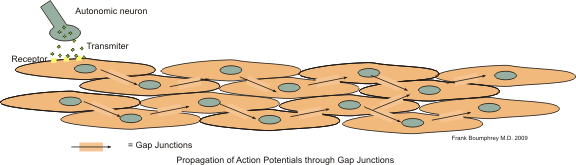 결론적으로, 단위 민무늬근에서 자극이 퍼지는 핵심 원리는 간극 연접을 통한 세포 간의 긴밀한 전기적·화학적 소통이며, 이는 근육 조직 전체가 하나의 단위처럼 효율적으로 작동하게 한다.