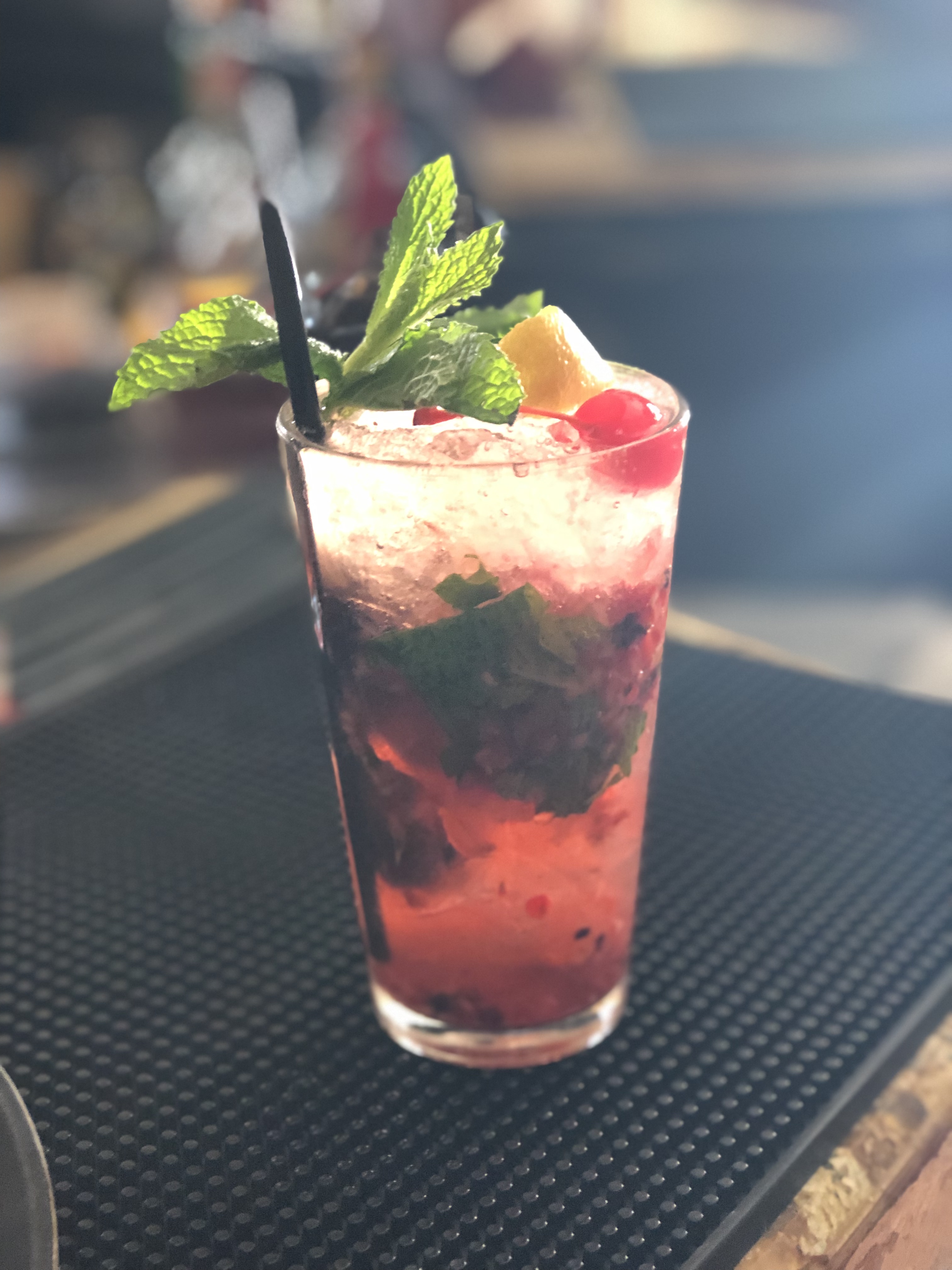 # 마지막으로 민트의 어린 싹을 장식하고(이 민트는 으깨지 않는다), 빨대를 꽂는다.